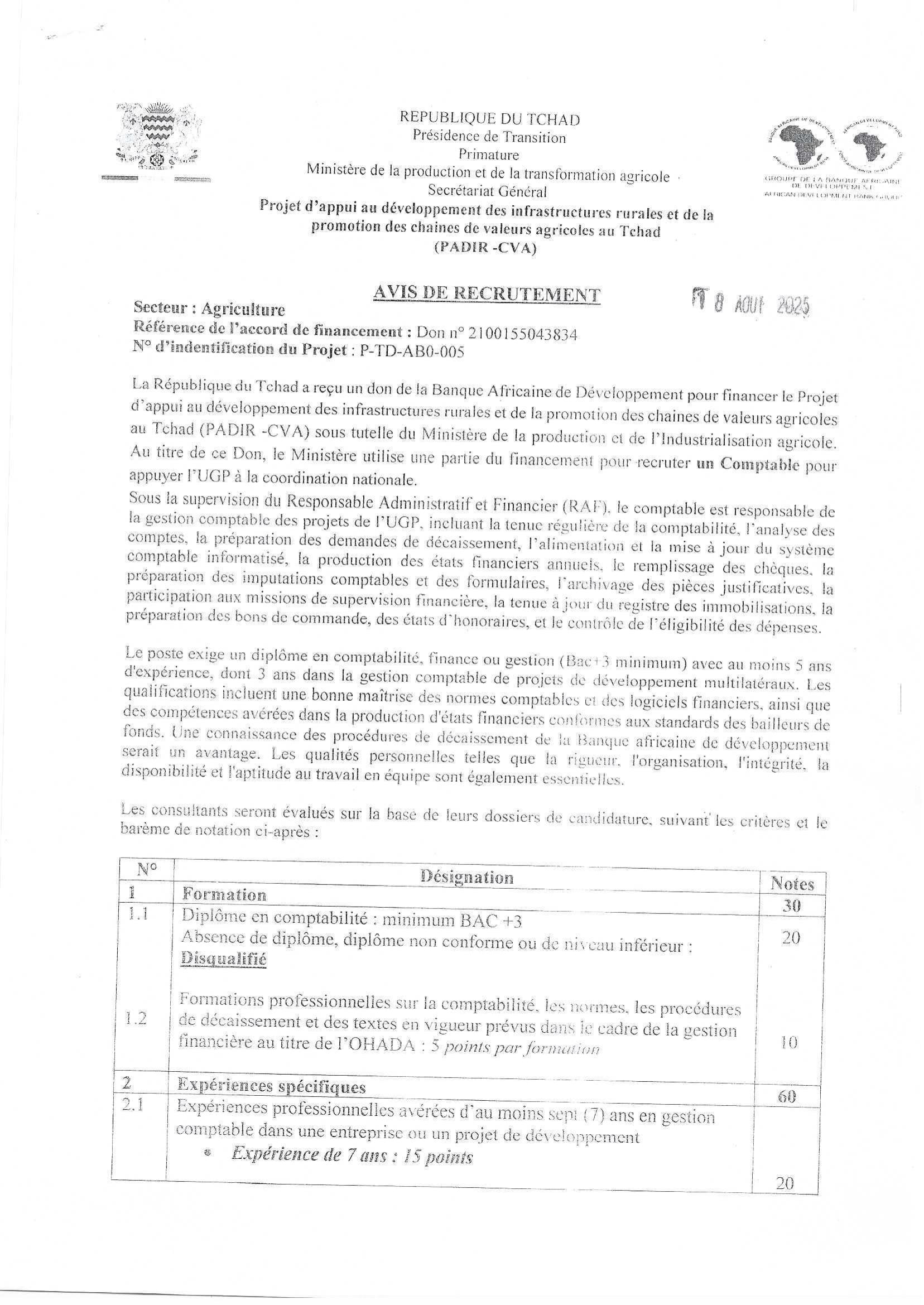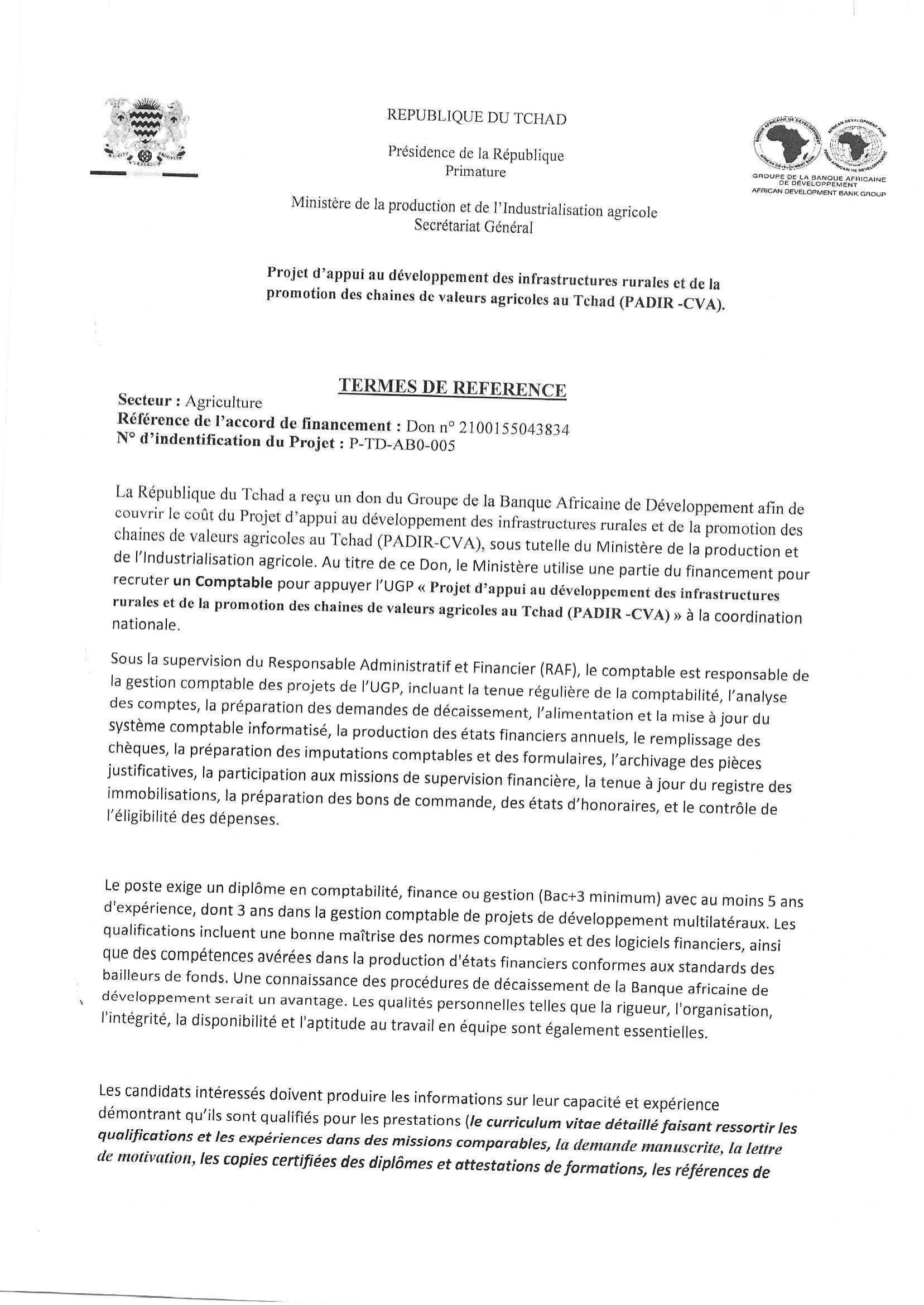 Appel à manifestation d’intérêt pour le recrutement d’un comptable pour appuyer l’UGP à la coordination nationale, Tchad Août 27, 2025 Appel à manifestation d’intérêt pour le recrutement d’un comptable pour appuyer l’UGP à la coordination nationale, Tchad Share on FacebookTweetFollow usSaveLe Fonds des Nations Unies pour l’enfance (UNICEF) recherche un(e) Stagiaire International en Changement Climatique, Yaoundé, Cameroun Bourses d’études ums de l’université Sebelas Maret, IndonésieAppel à candidatures pour les bourses George F Kennan du Wilson Center, USA Le Programme des Nations Unies pour le développement (PNUD) recrute deux stagiaires en Communication (spécialité photo & vidéo), N’Djamena, Tchad
