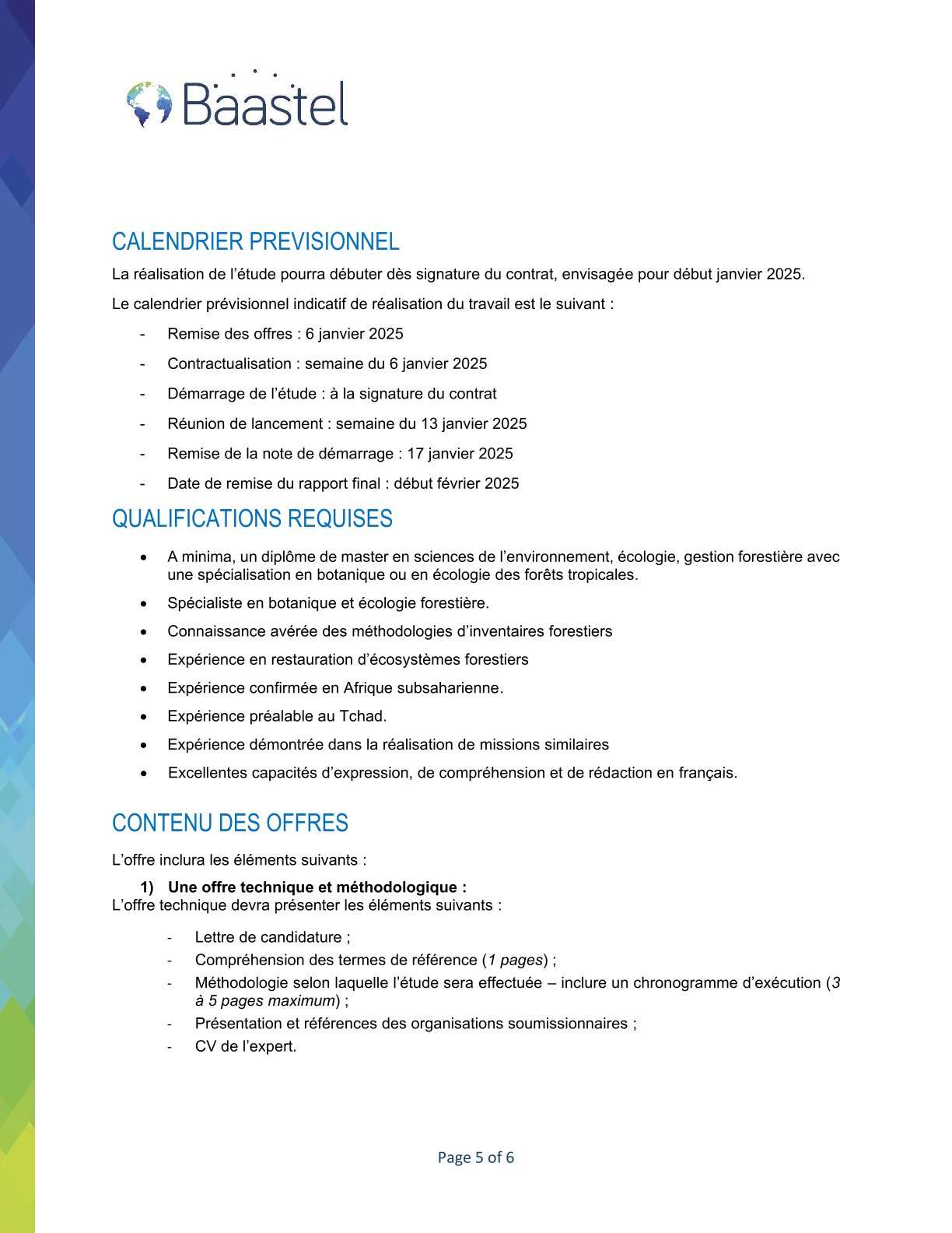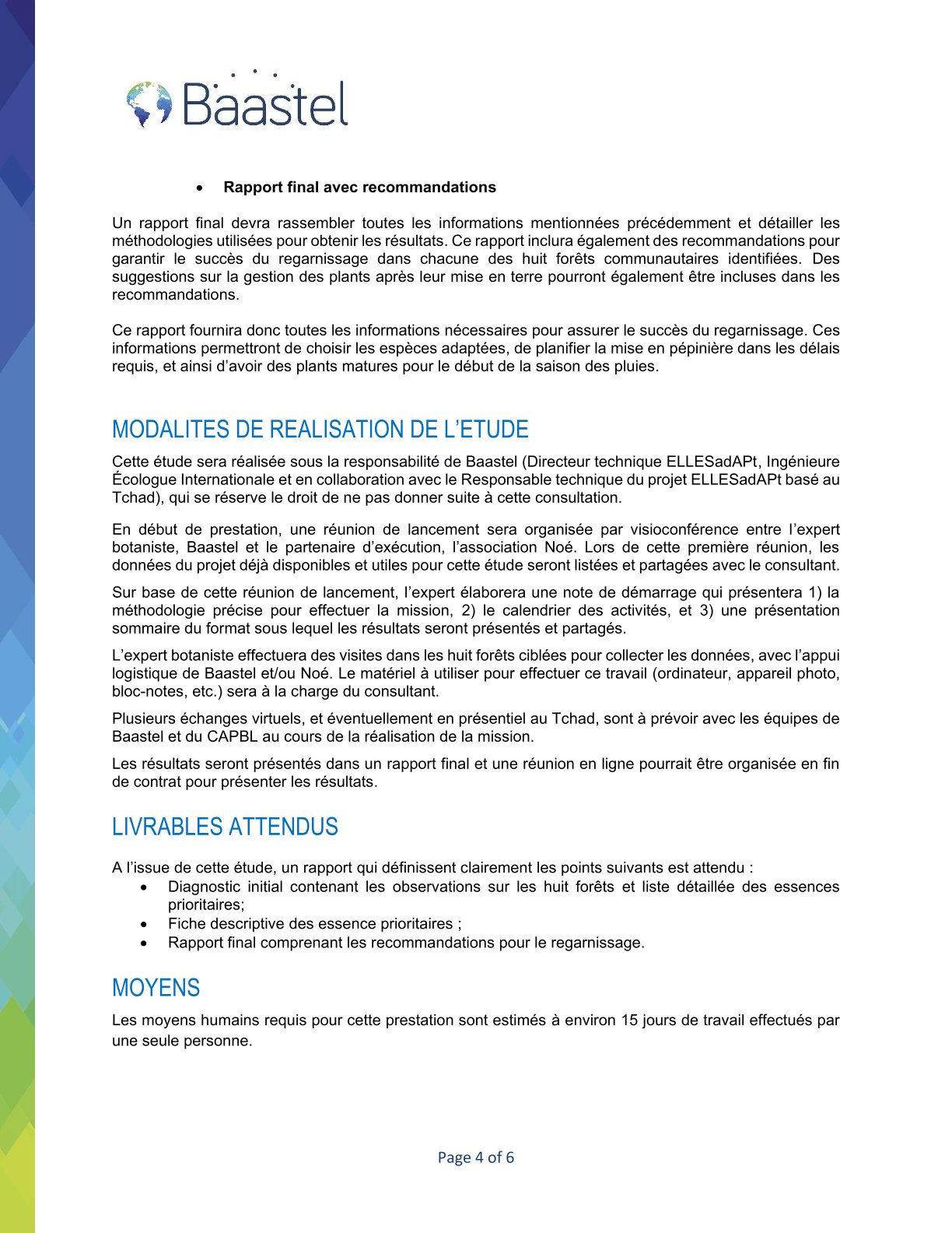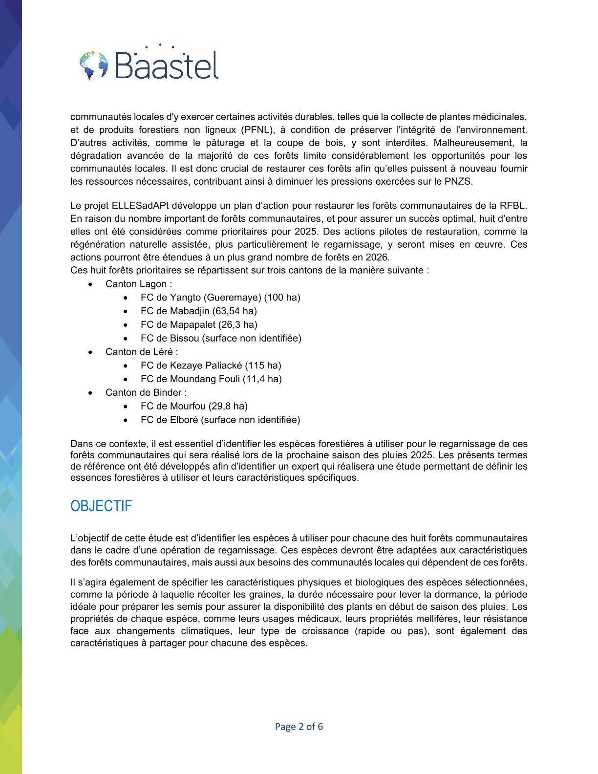 Baastel lance un avis d’appel d’offres pour l’Identification des essences forestières prioritaires pour la restauration de huit forêts communautaires dans la réserve de faune de Binder-Léré, Tchad