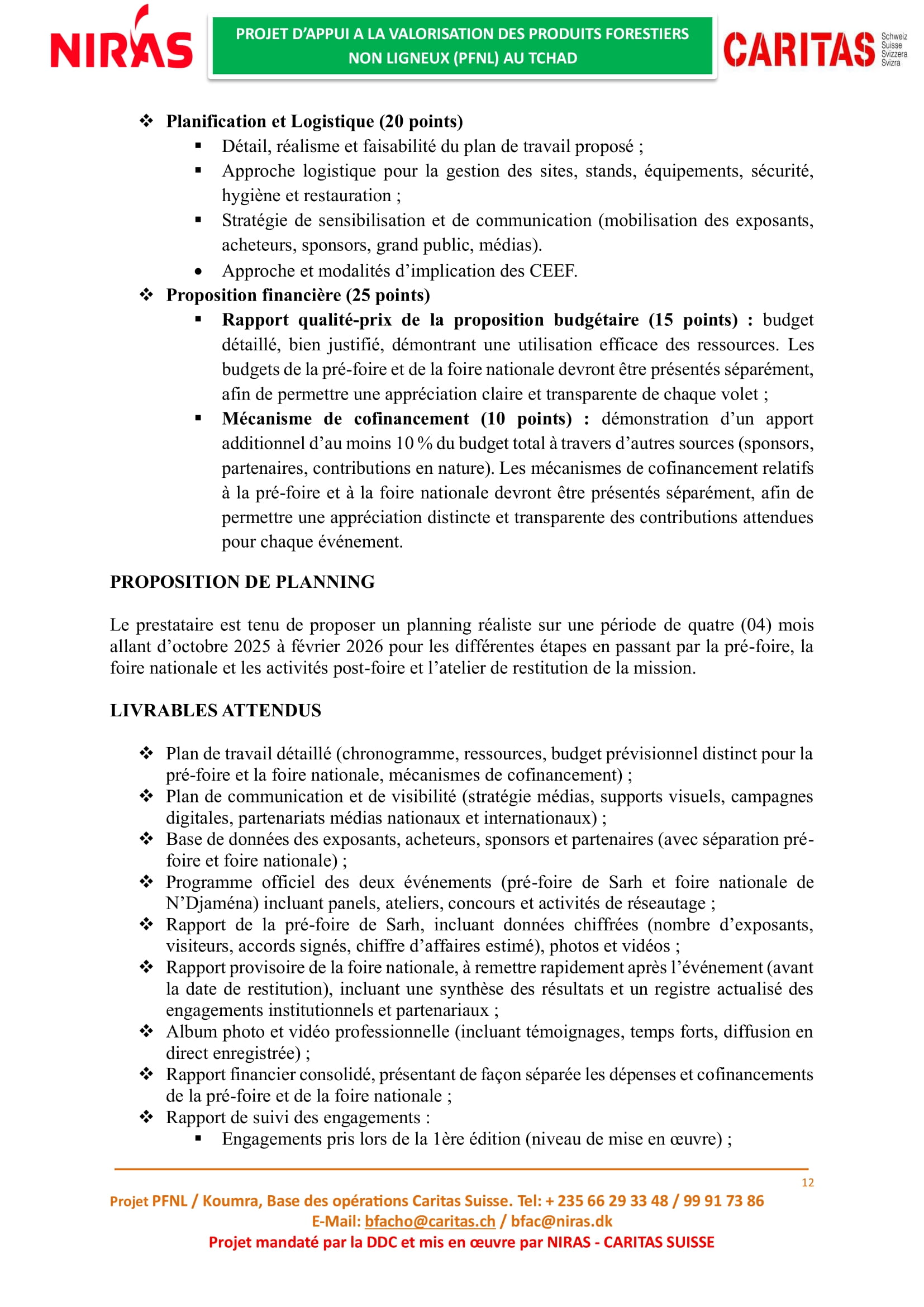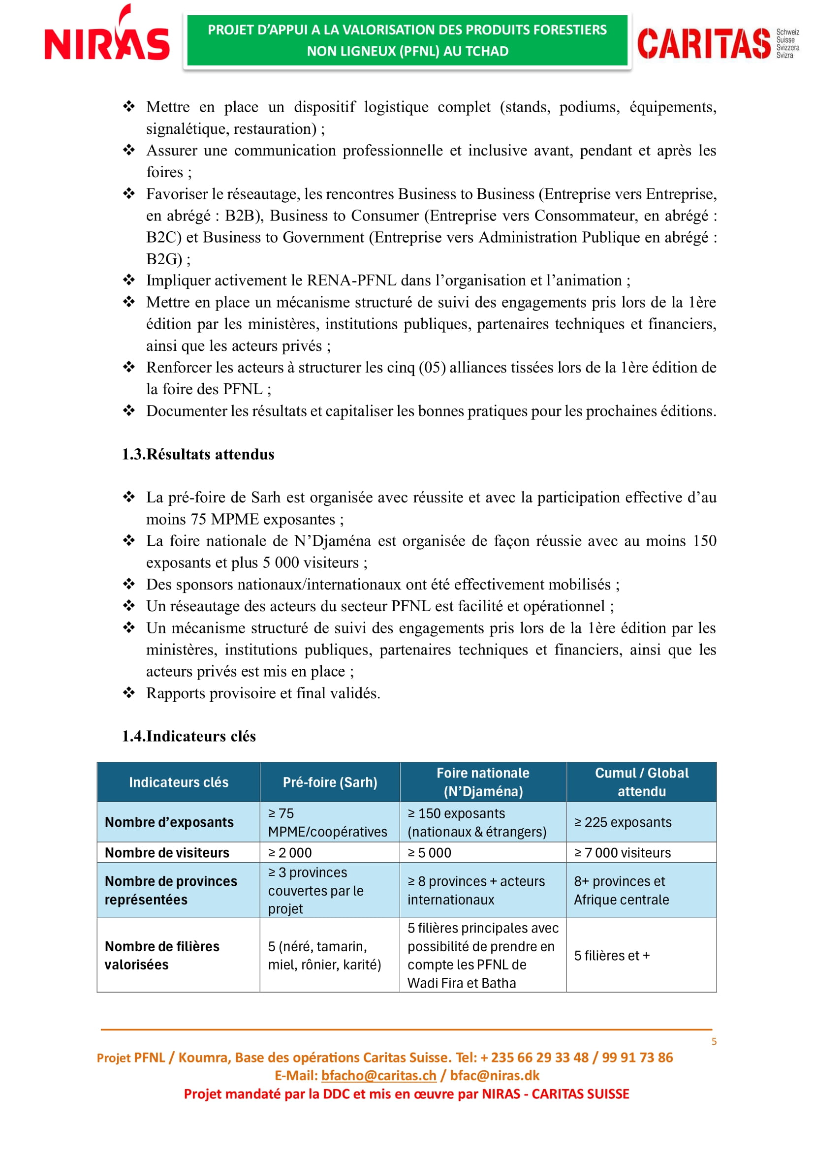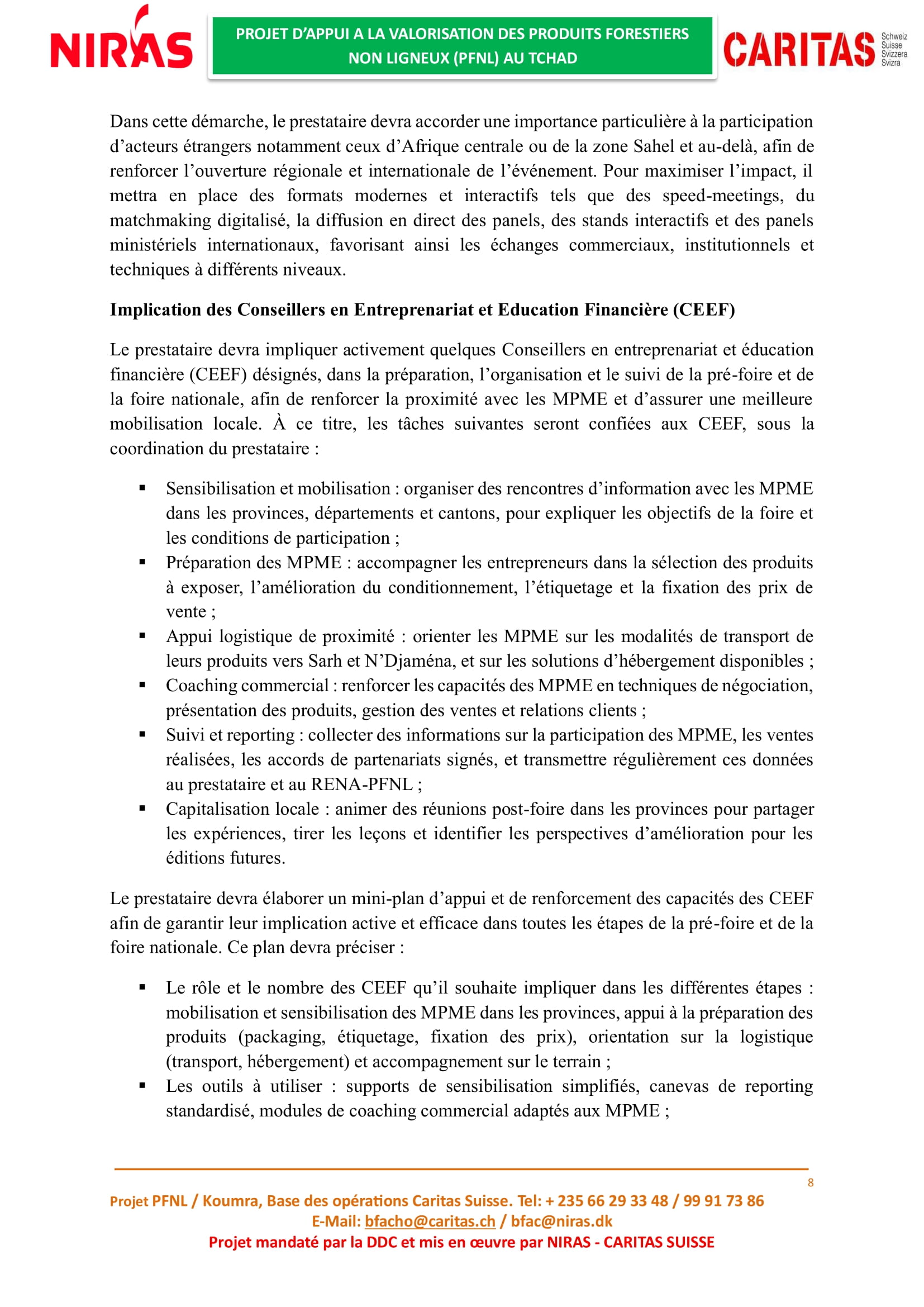 Caritas Suisse recrute un prestataire en charge de l’organisation de la deuxième édition de la foire nationale des Produits Forestiers Non Ligneux (PFNL), Tchad