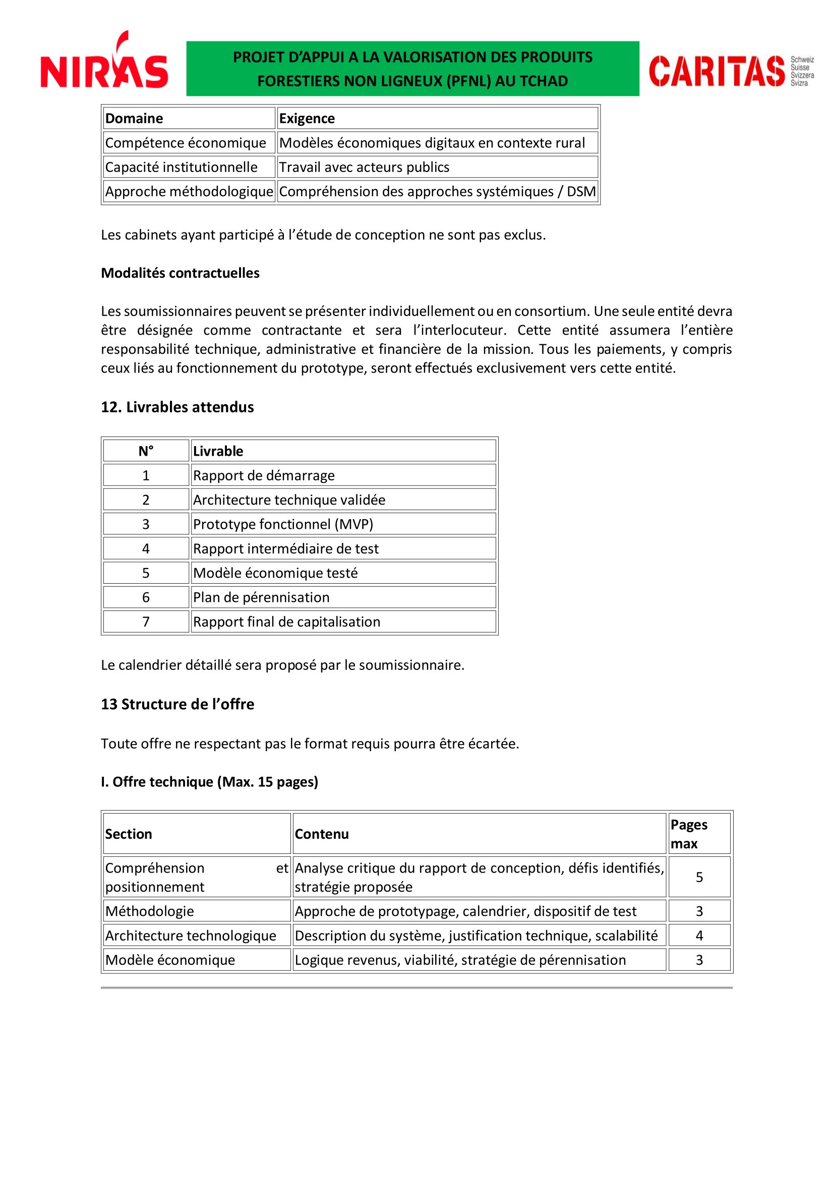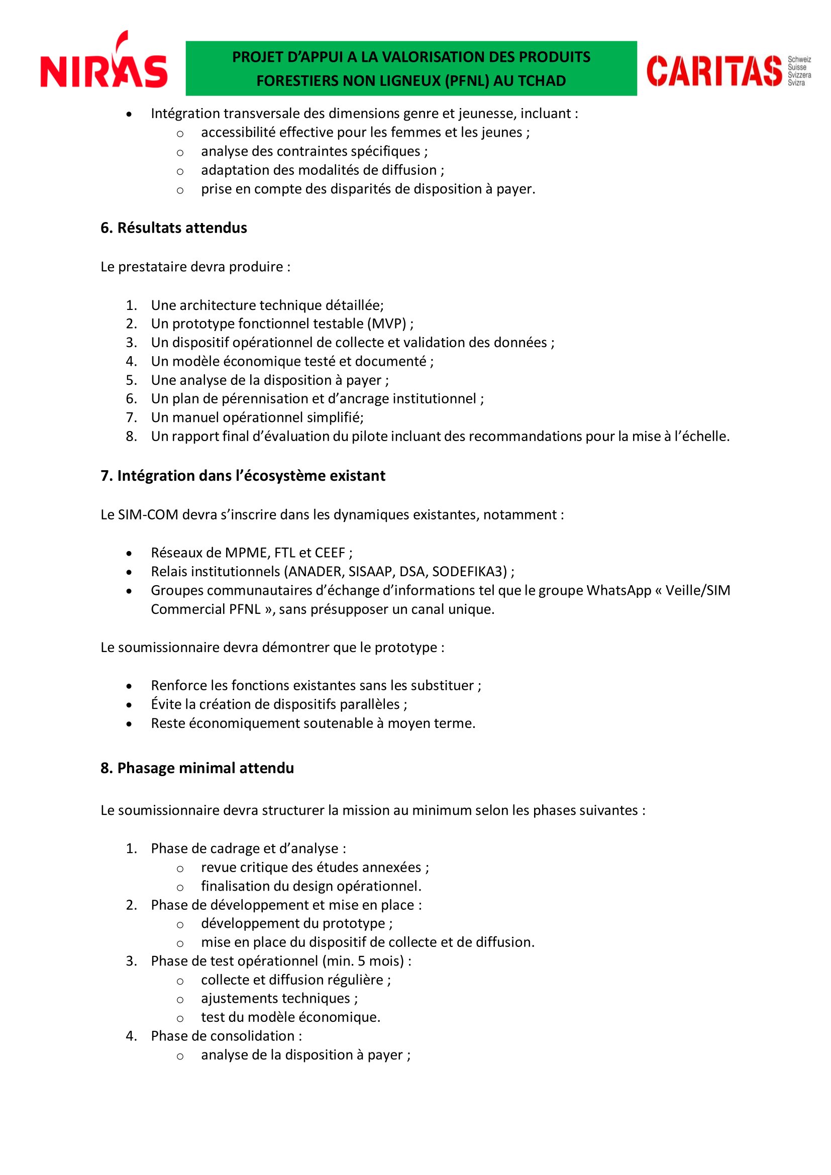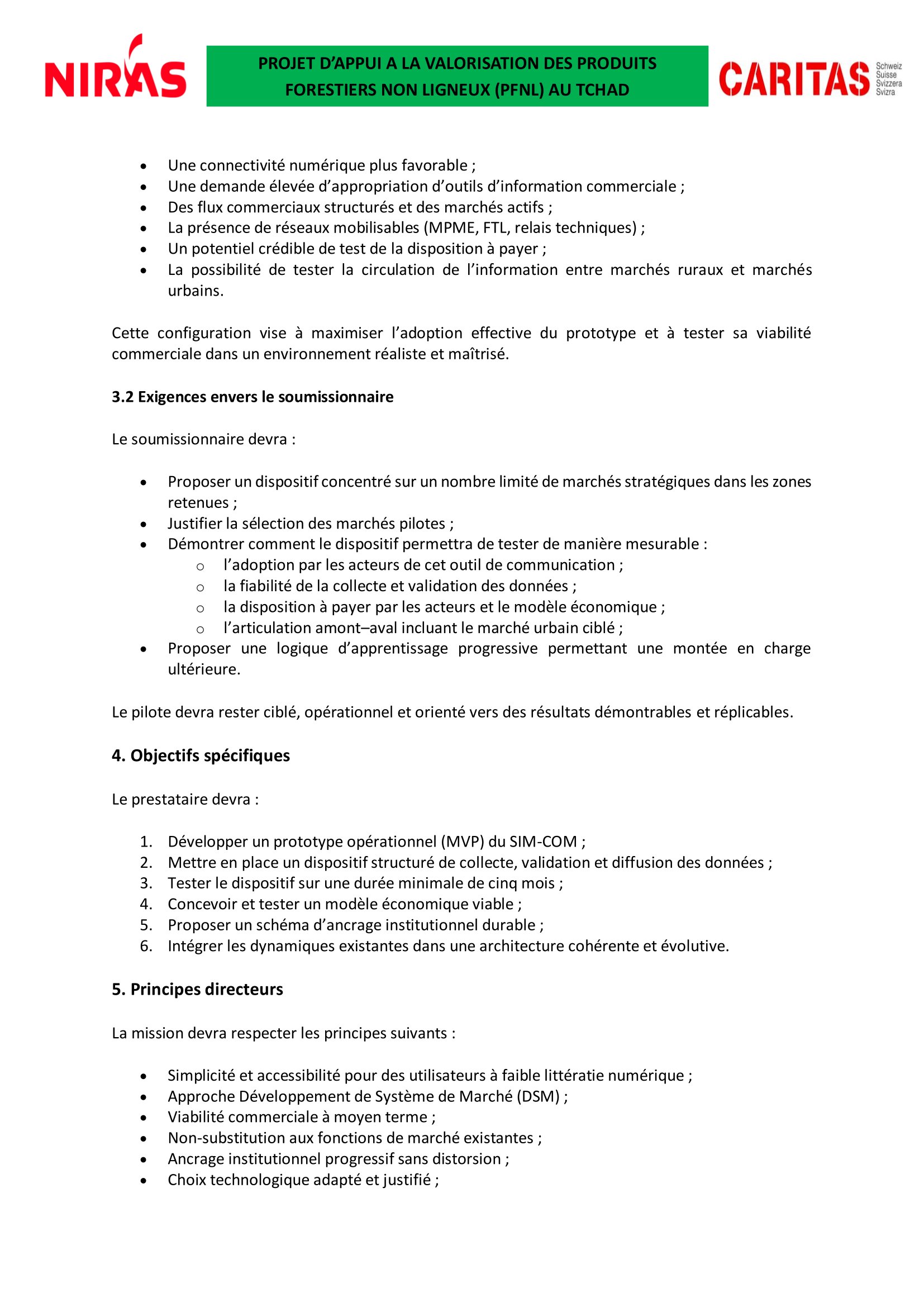 Caritas Suisse lance un avis d’appel d’offres pour le recrutement d’un prestataire en charge pour le développement, le prototypage et le test opérationnel du système d’information de marché commercial (SIM-COM) des PFNL au Tchad