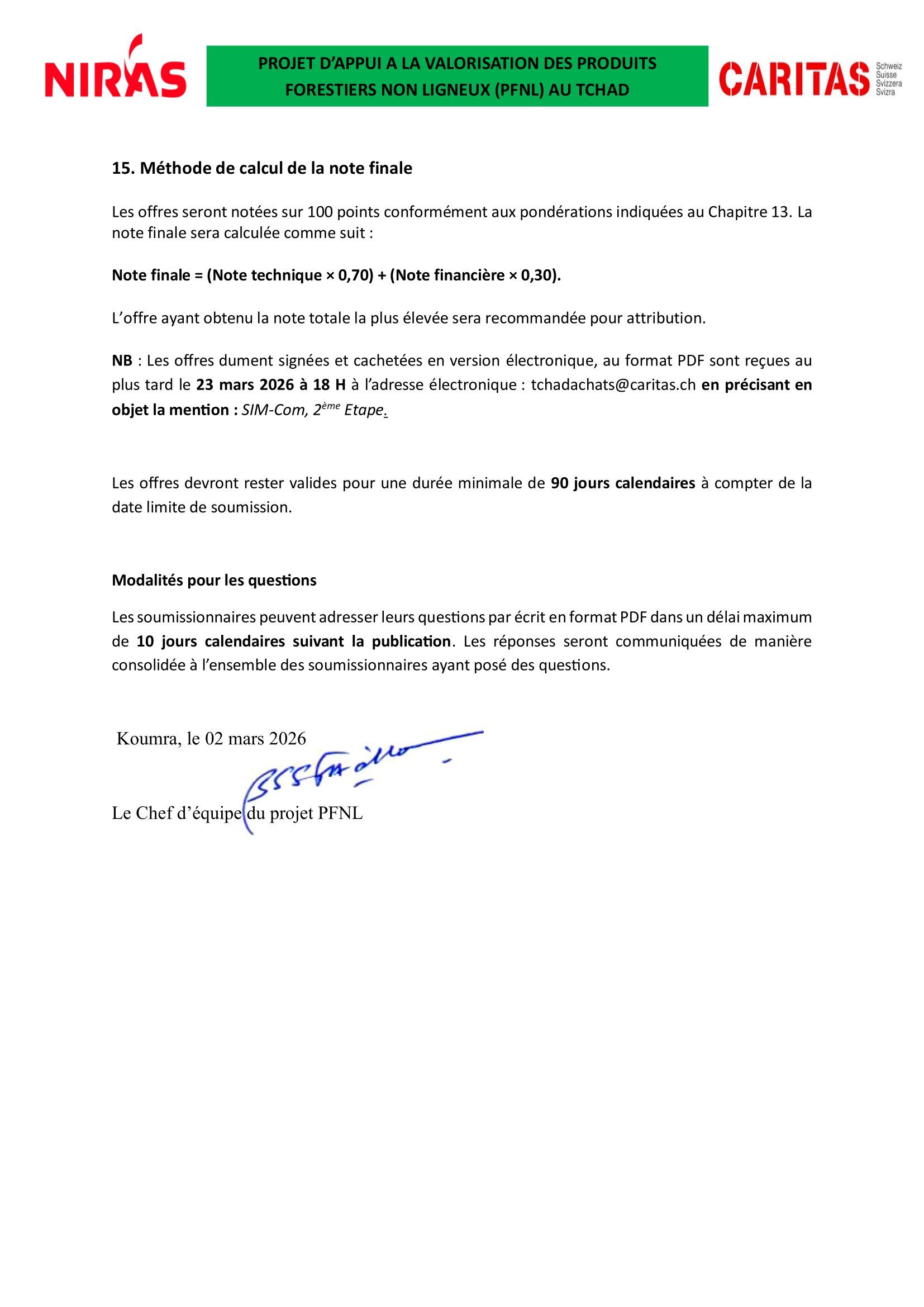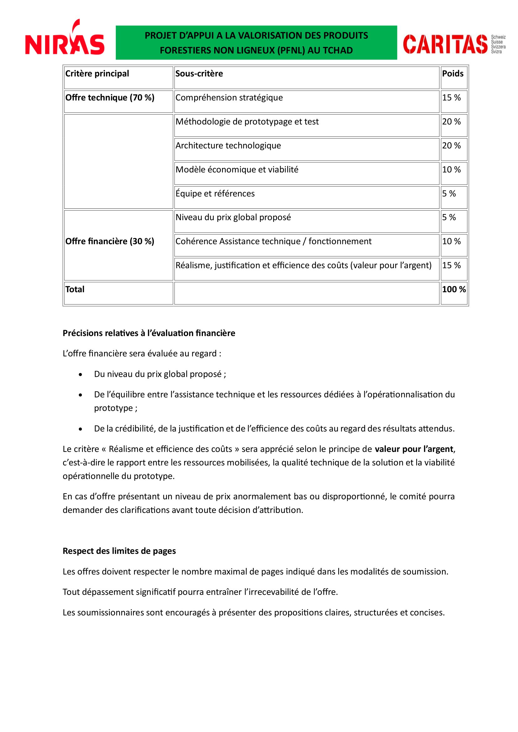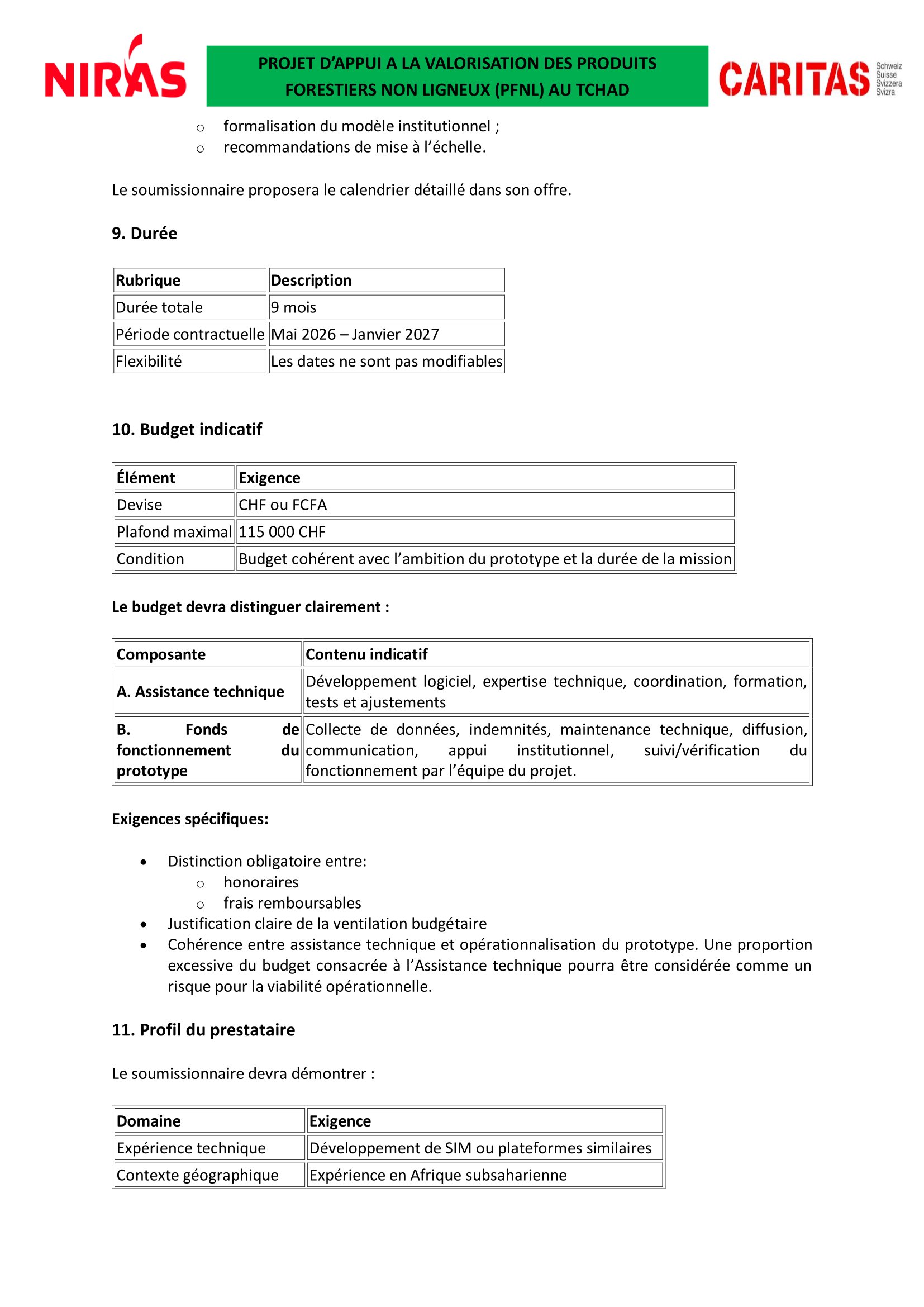 Caritas Suisse lance un avis d’appel d’offres pour le recrutement d’un prestataire en charge pour le développement, le prototypage et le test opérationnel du système d’information de marché commercial (SIM-COM) des PFNL au Tchad