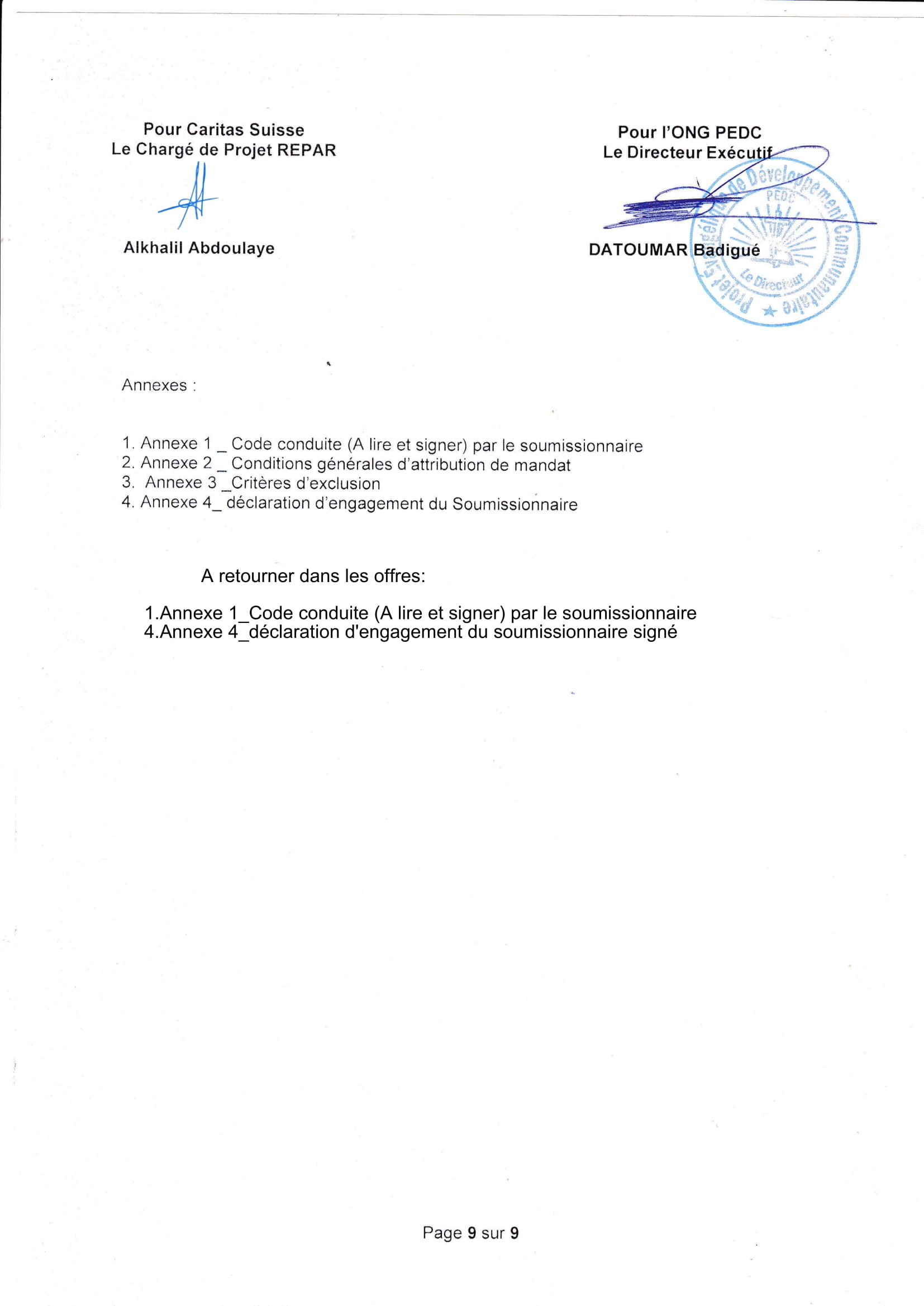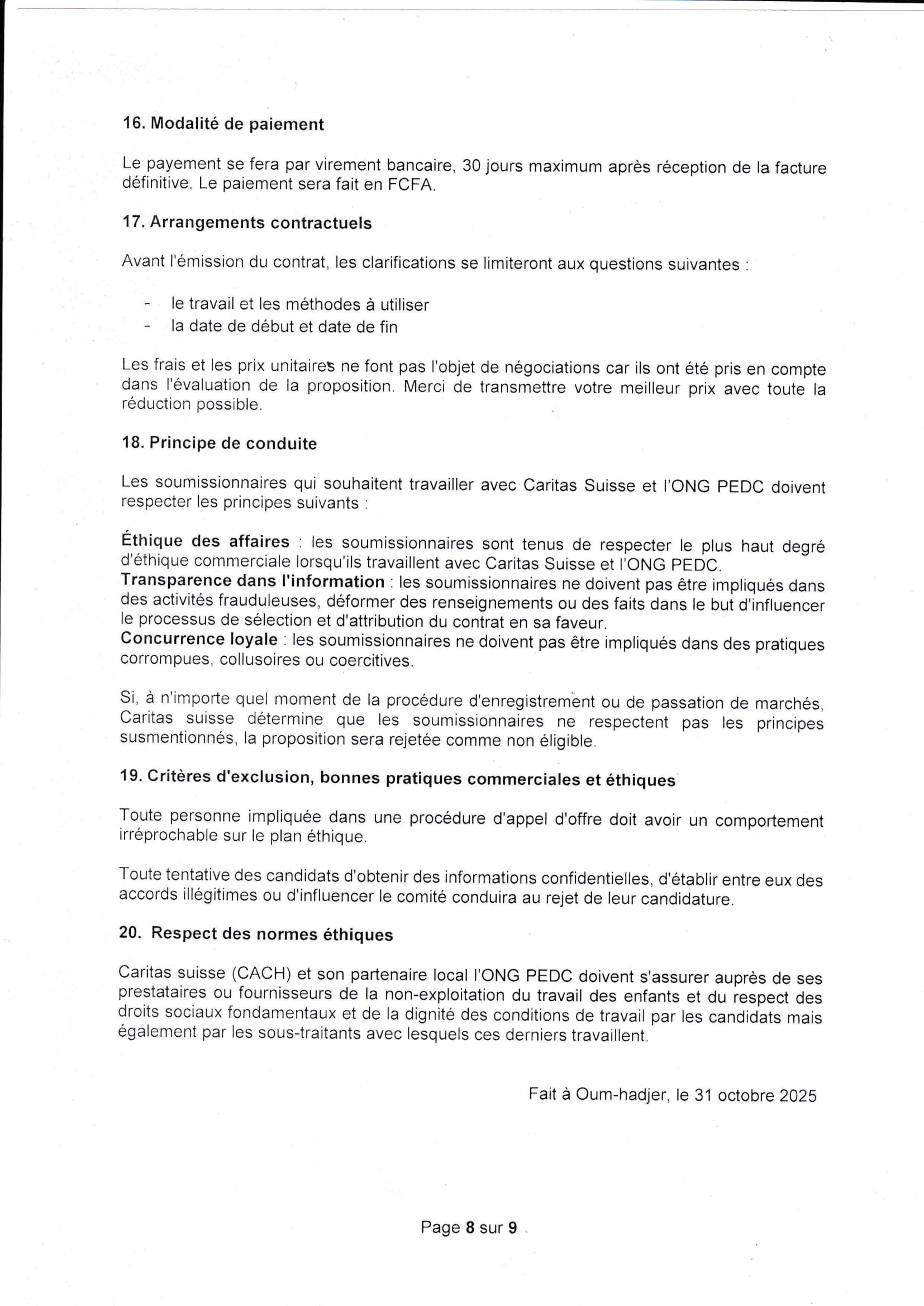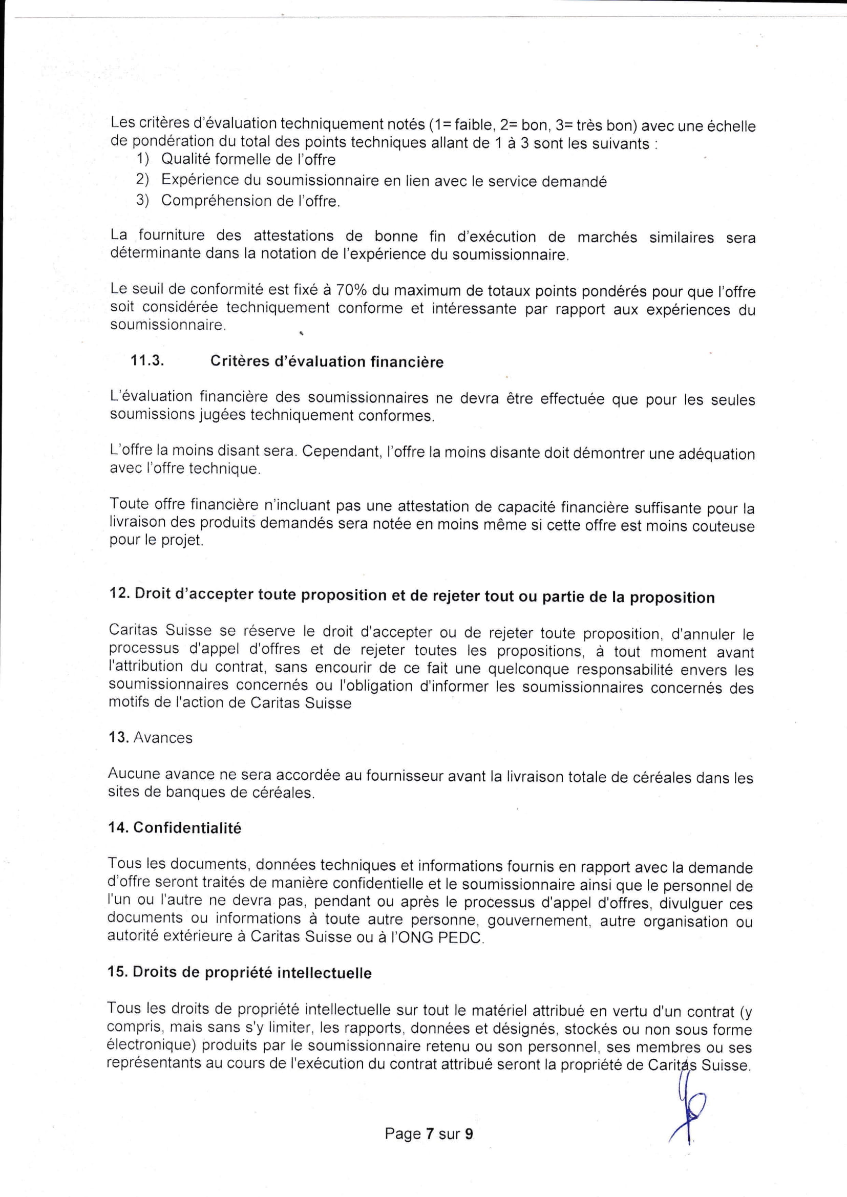 Caritass Suisse lance un appel d’offre pour le recrutement d’un fournisseur pour la livraison de céréales dans 11 banques, Batha Est et Assinet , Tchad