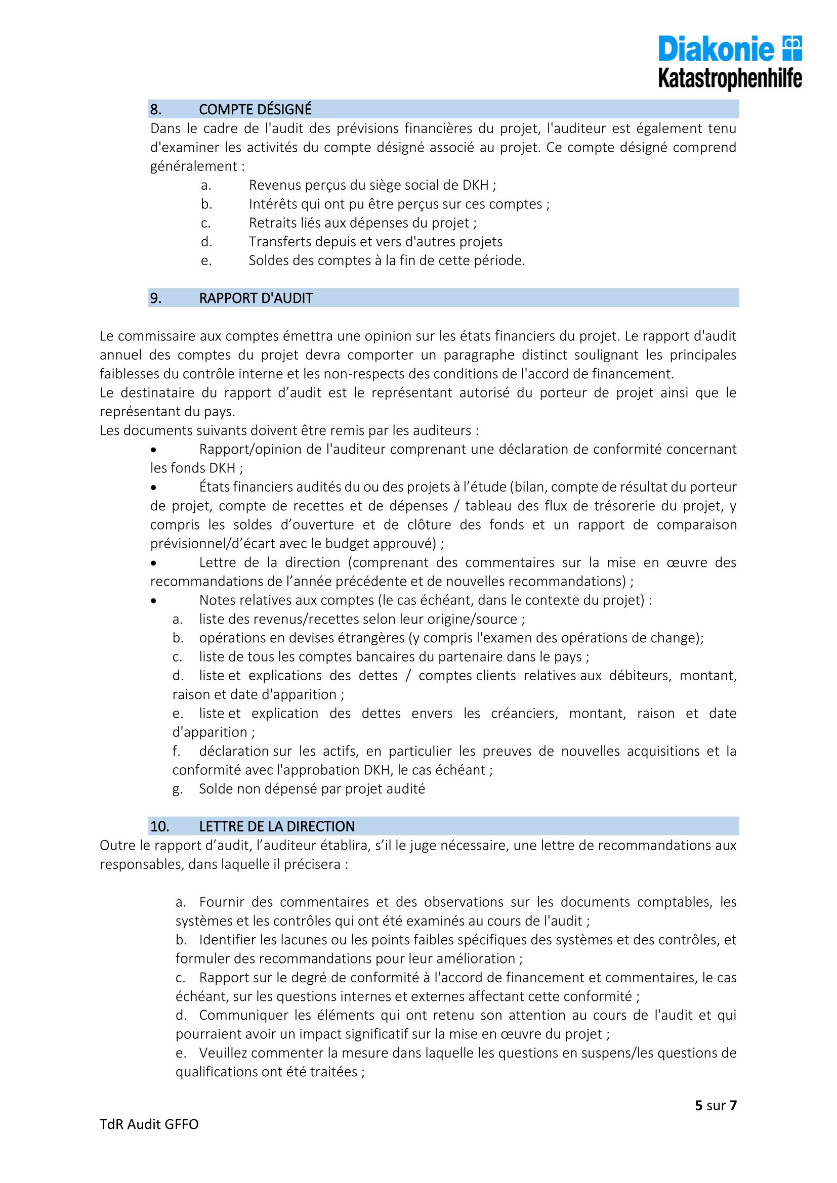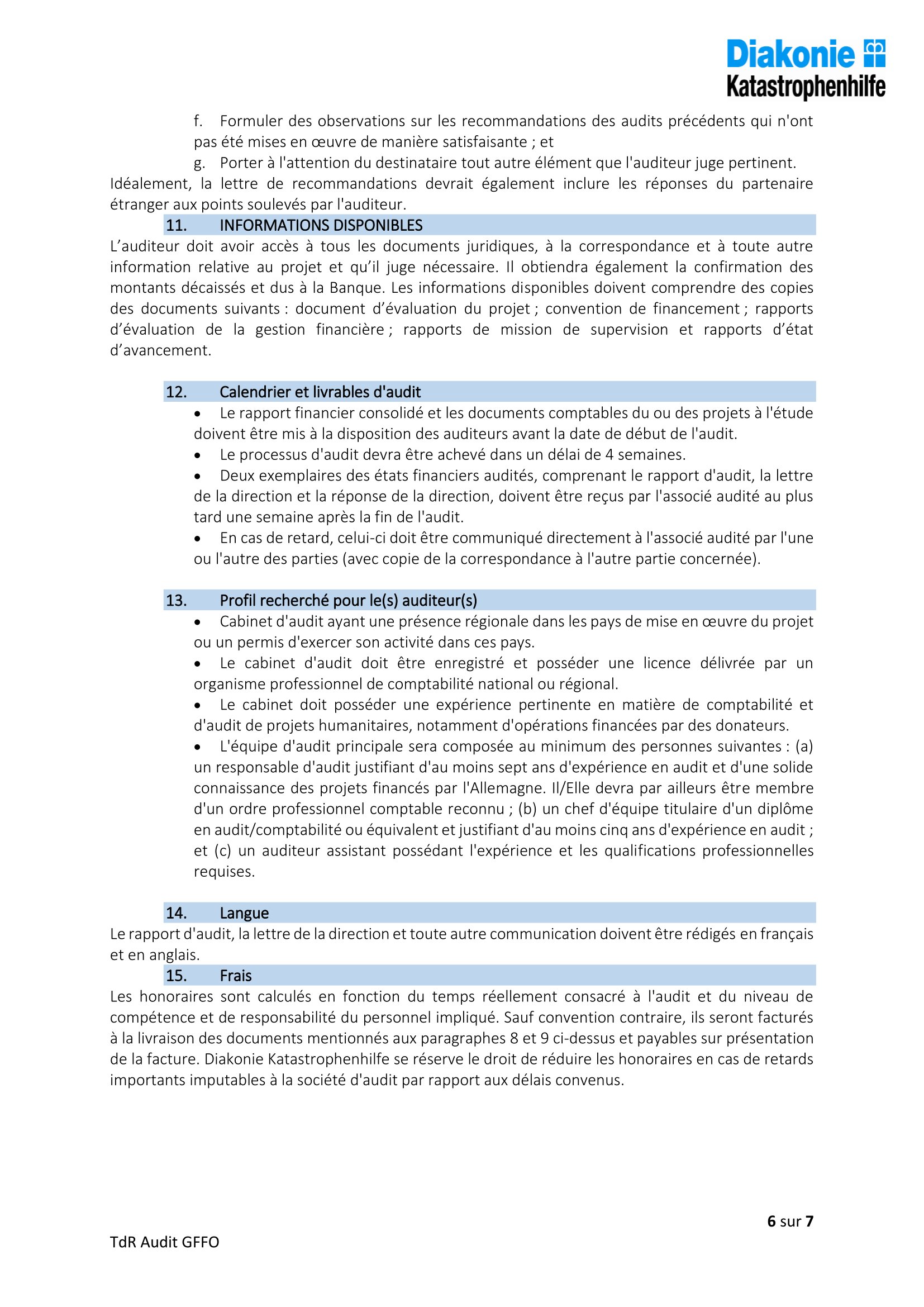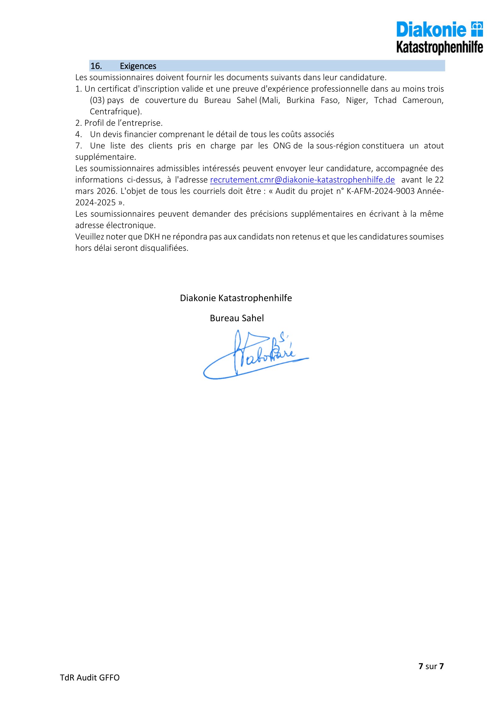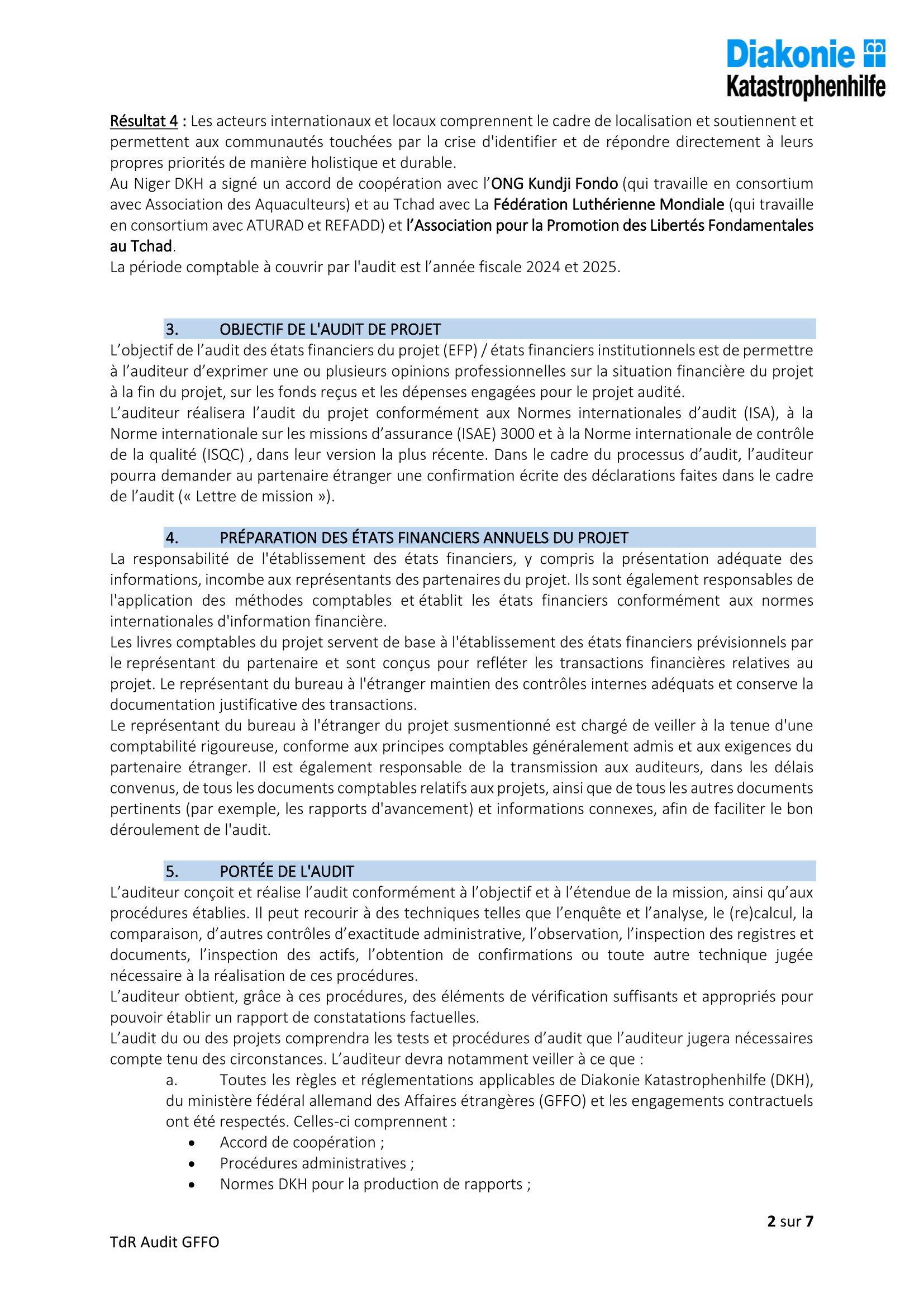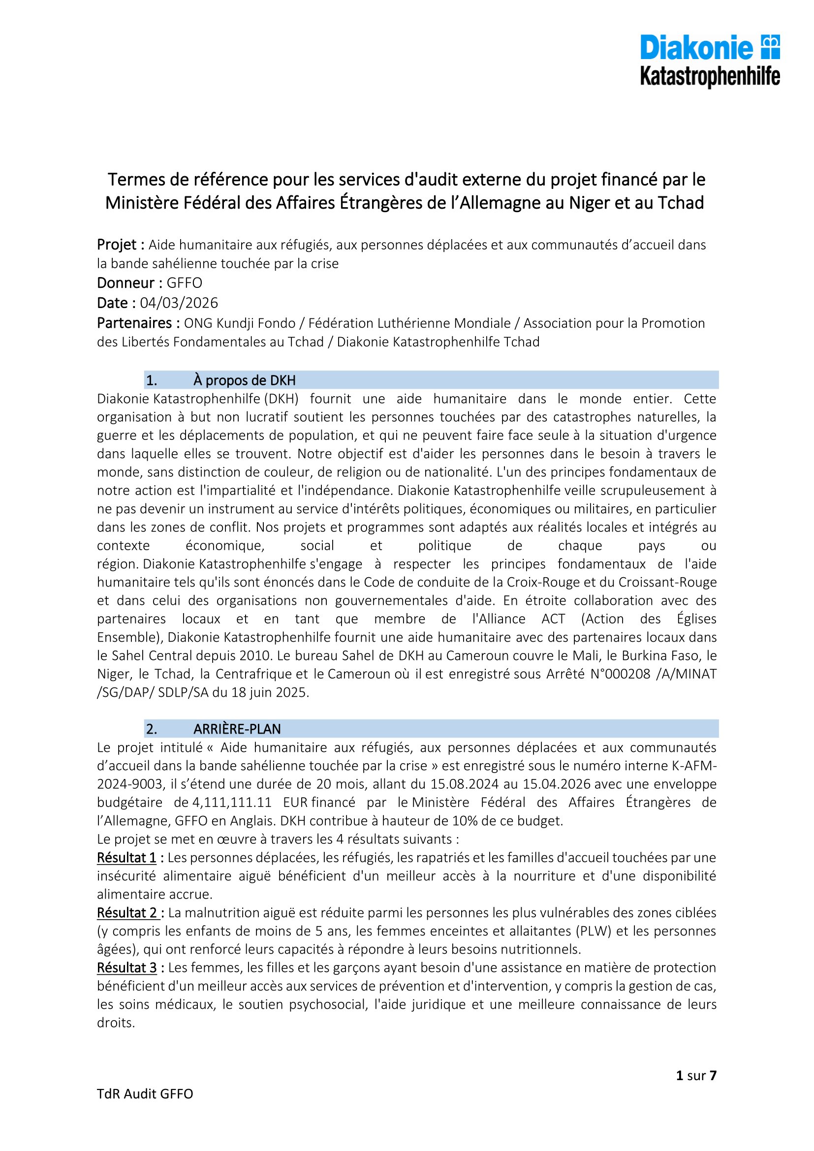 Diakonie Katastrophenhilfe (DKH) lance un avis d’appel d’offres pour les services d’audit externe du projet financé par le Ministère Fédéral des Affaires Étrangères de l’Allemagne au Niger et au Tchad