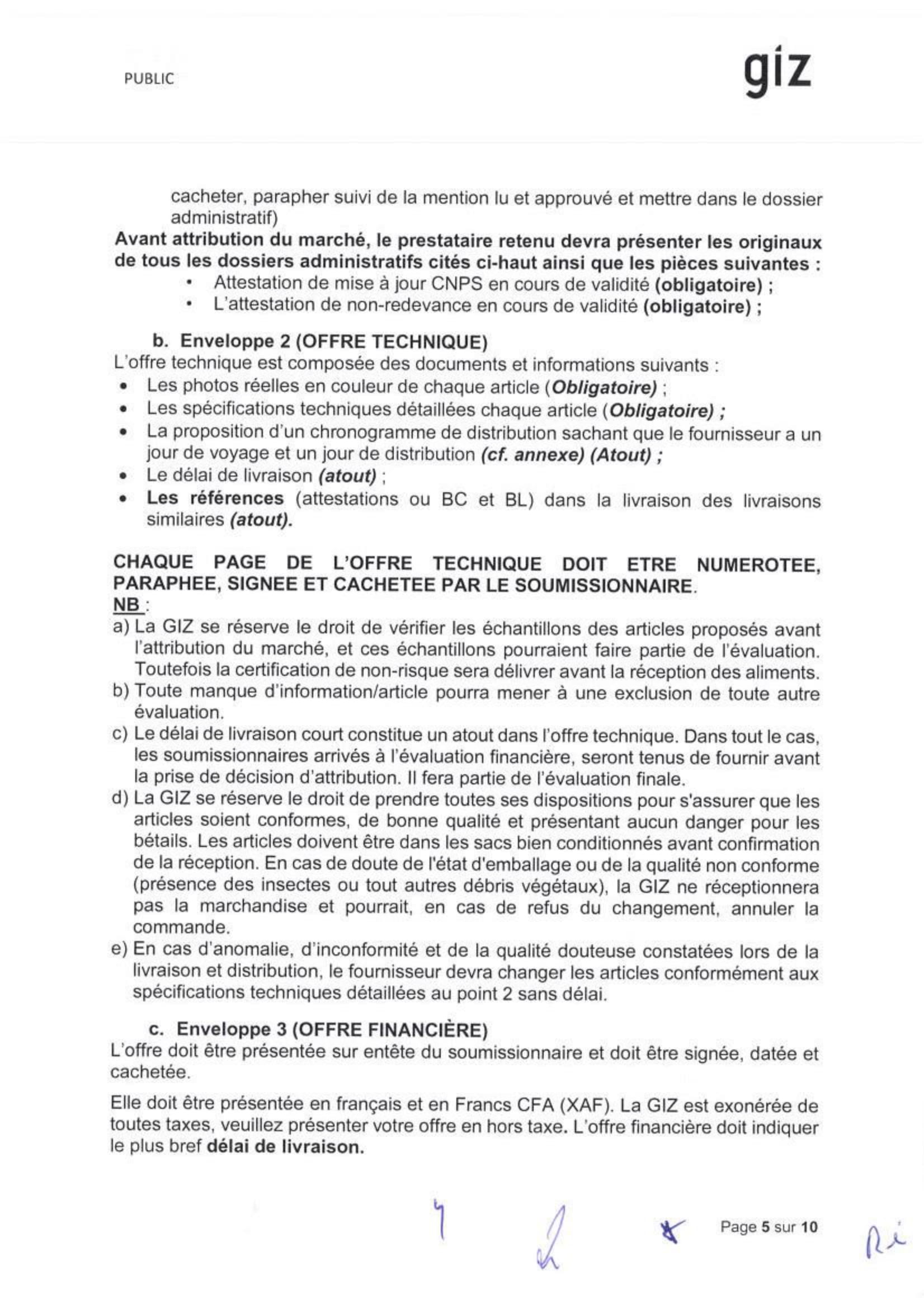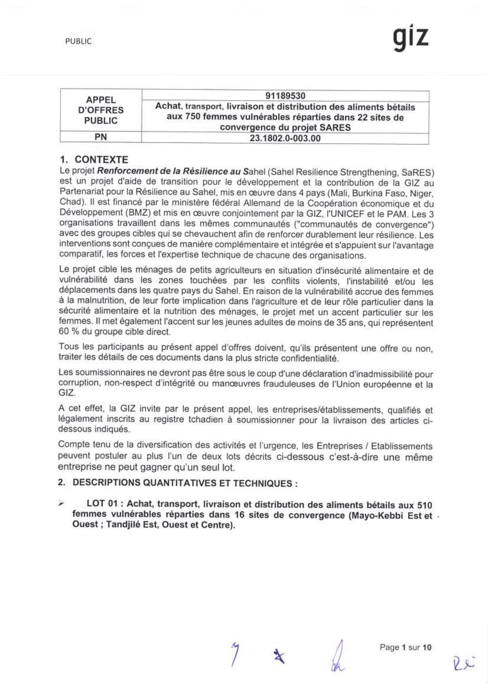 GIZ lance un appel d’offre pour achat, transport, livraison et distribution des aliments bétails aux 750 femmes vulnérables réparties dans 22 sites de convergence du projet SARES, N’Djamena, Tchad