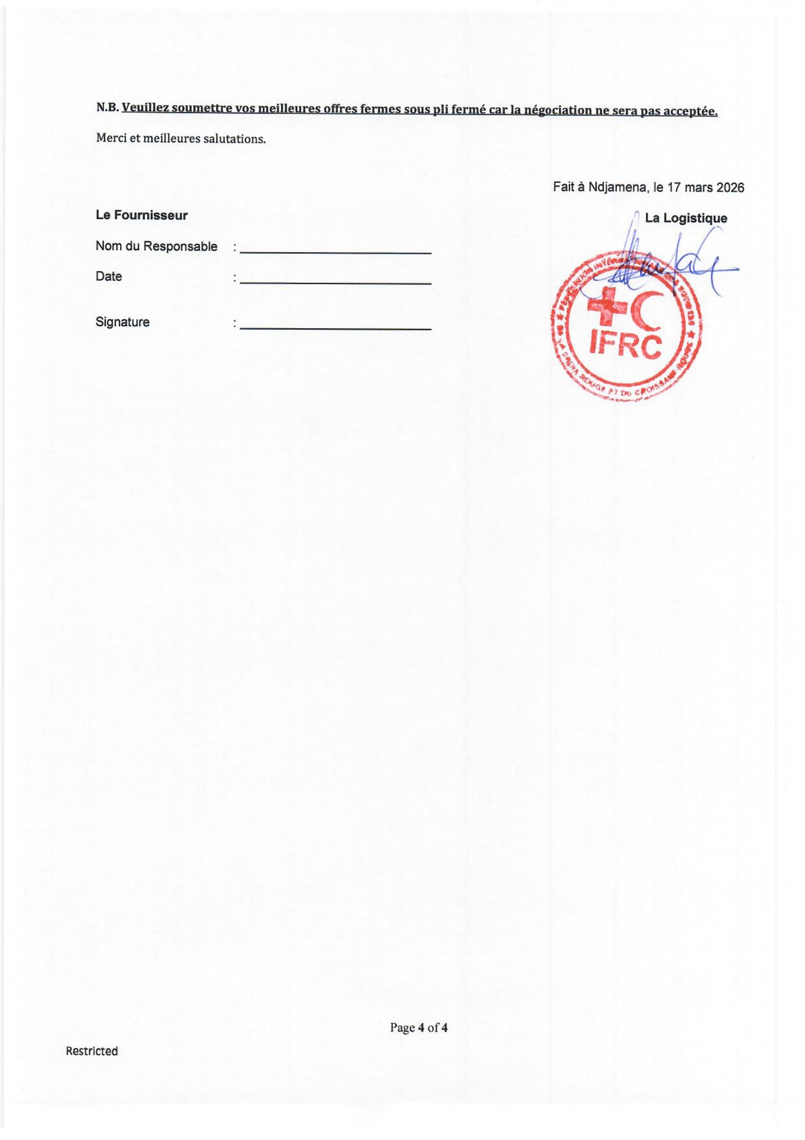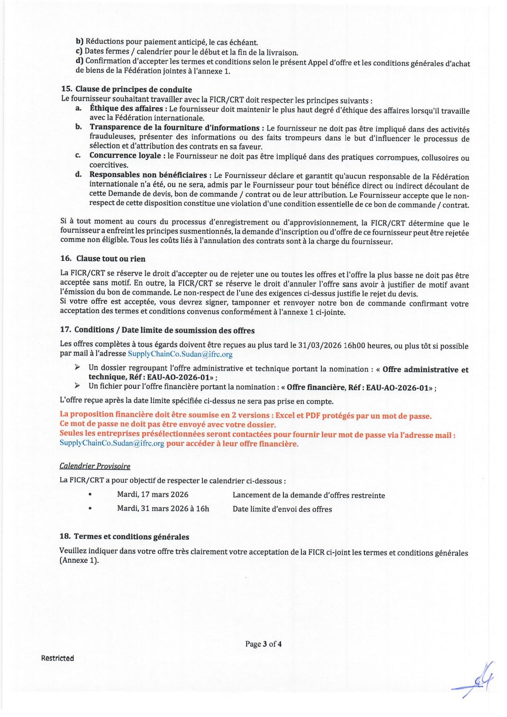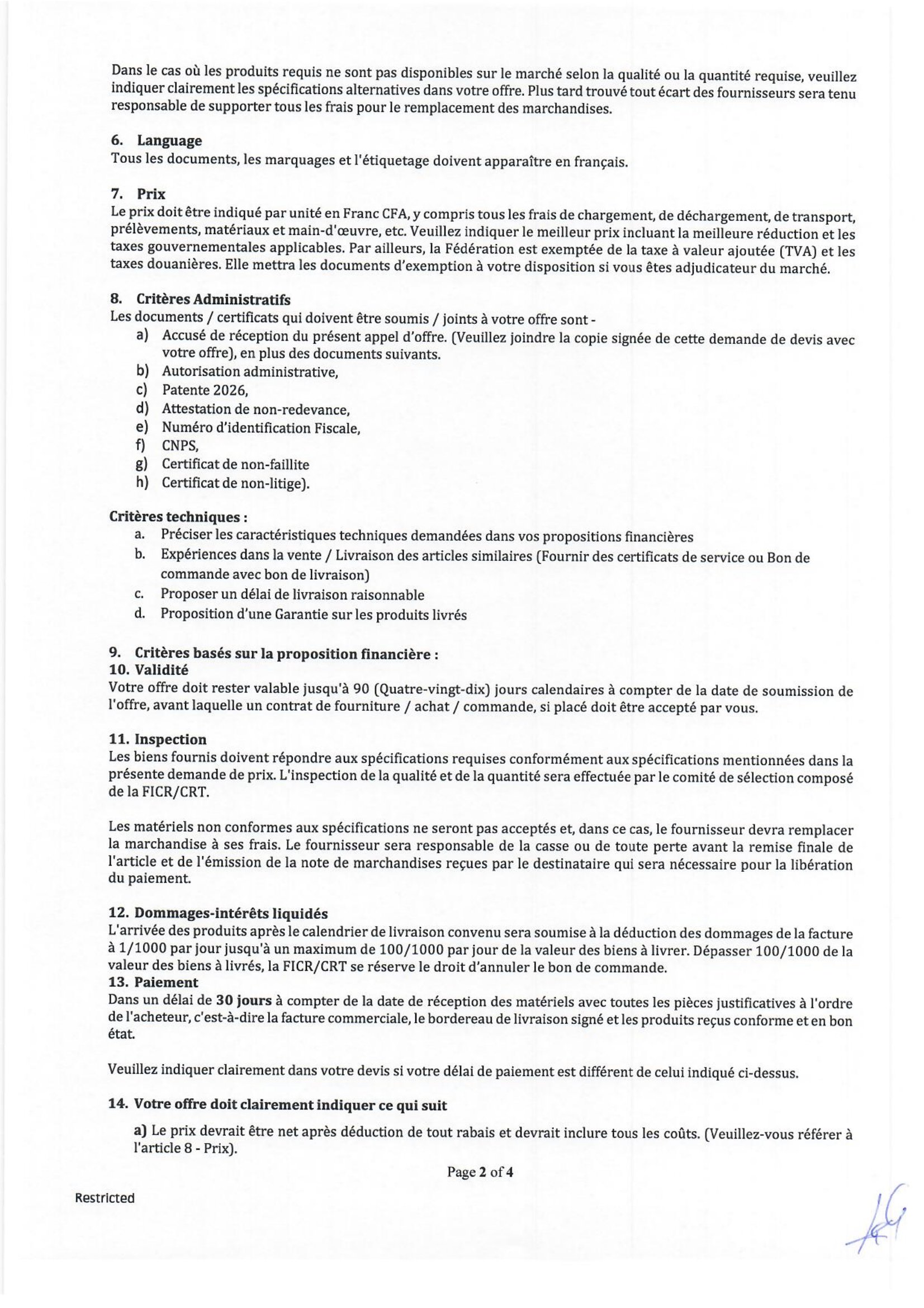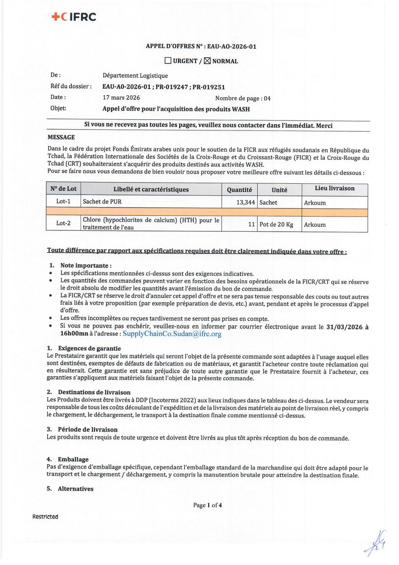 La Fédération internationale des Sociétés de la Croix-Rouge et du Croissant-Rouge (FICR) lance un avis d’appel d’offres pour l’acquisition de produits WASH, Arkoum, Tchad