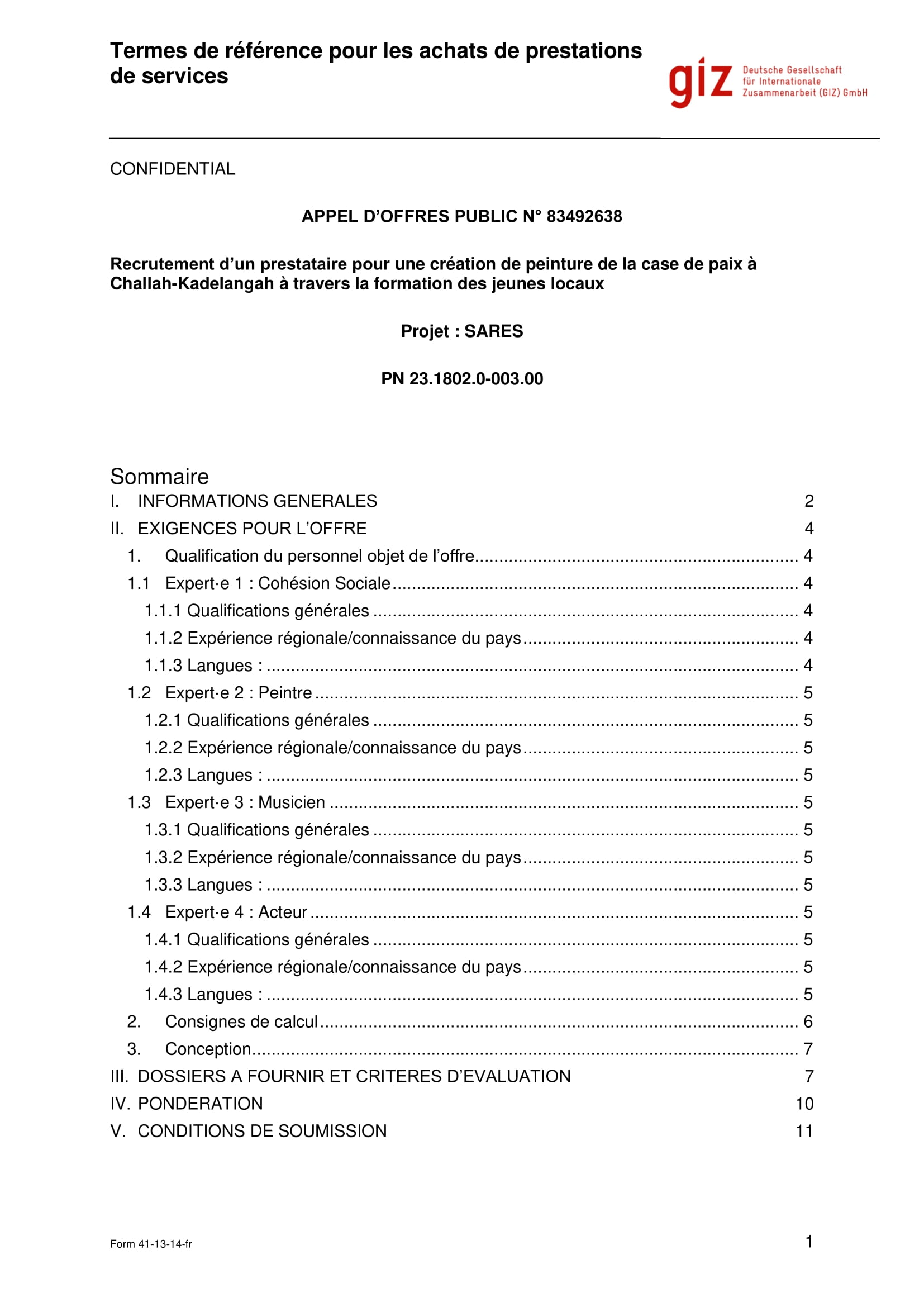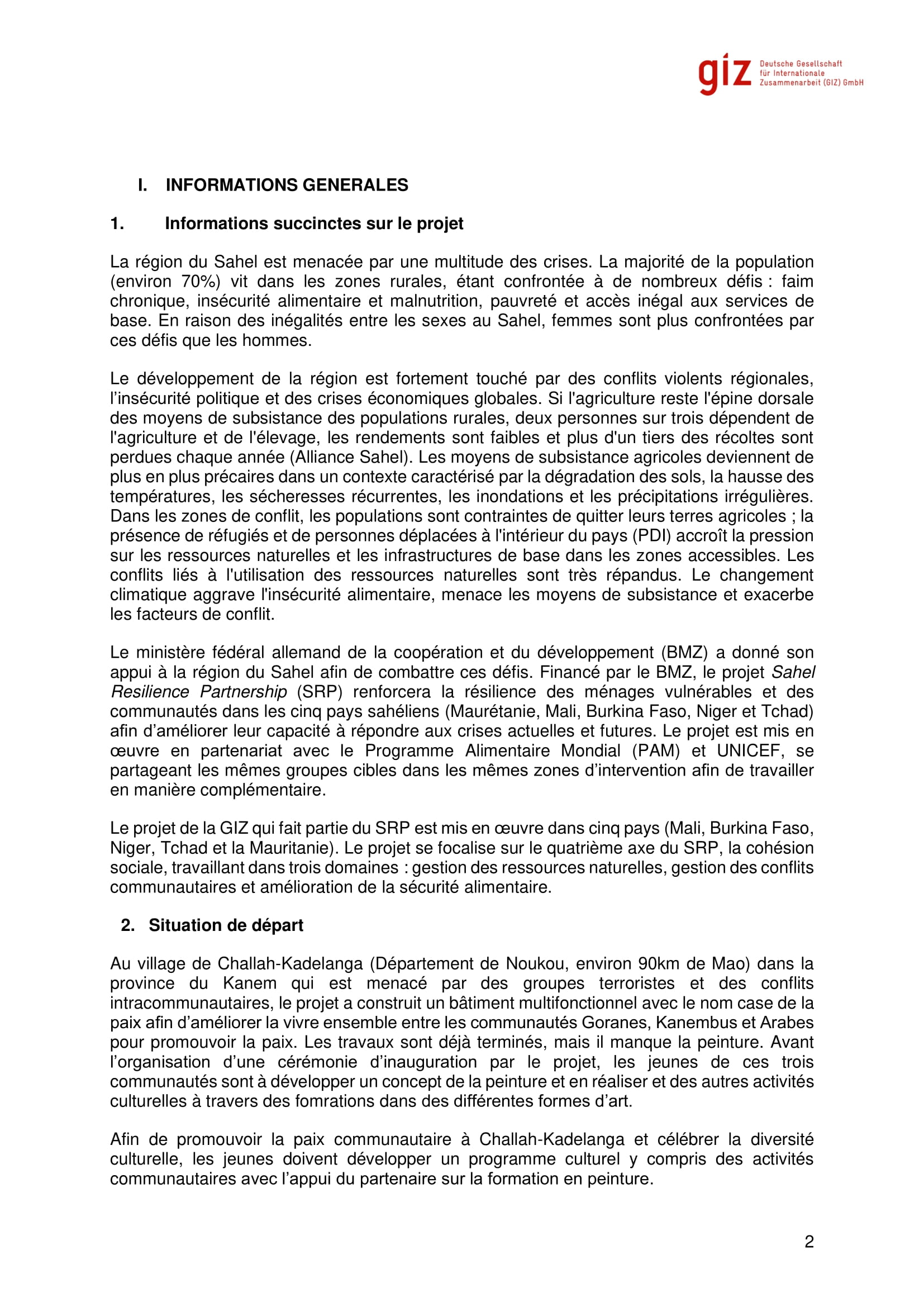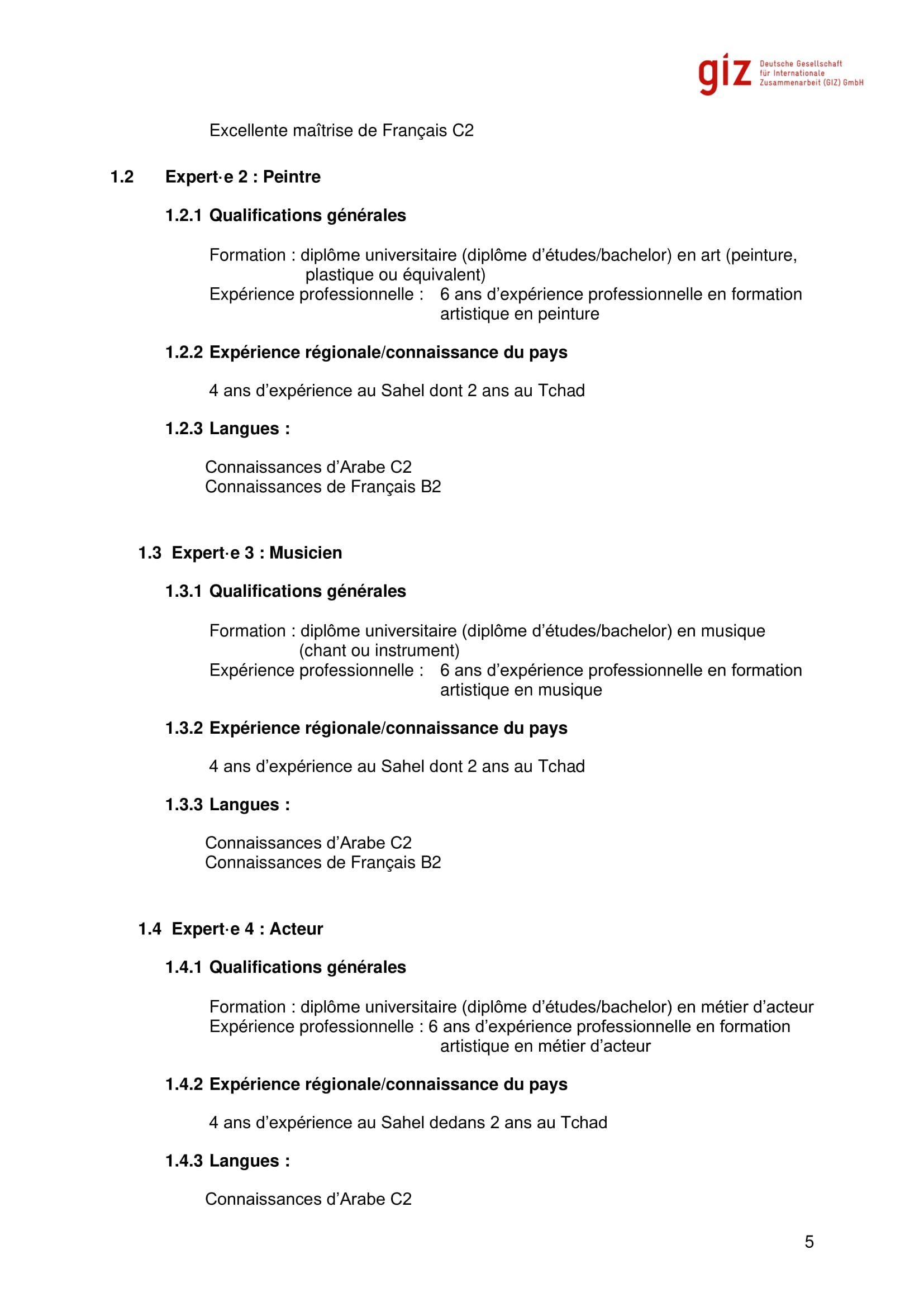 La GIZ lance un avis d’appel d’offres pour le recrutement d’un prestataire pour une création de peinture de la case de paix à Challah-Kadelangah à travers la formation des jeunes locaux, N’Djamena, Tchad