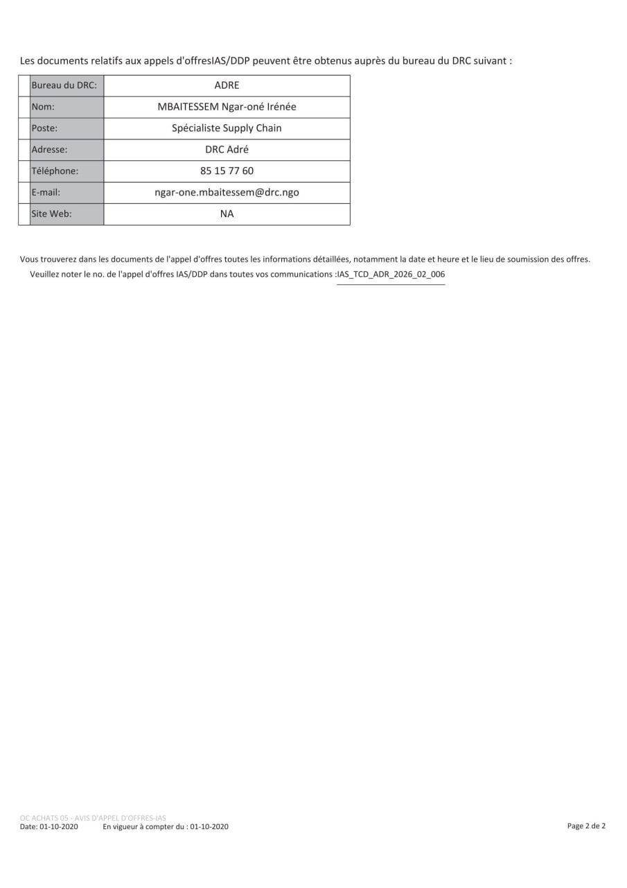 Le Conseil Danois des Réfugiés (DRC) lance un avis d’appel d’offres pour la fourniture d’Assistance en cash pour la population hôte dans les villages, Adré, Tchad