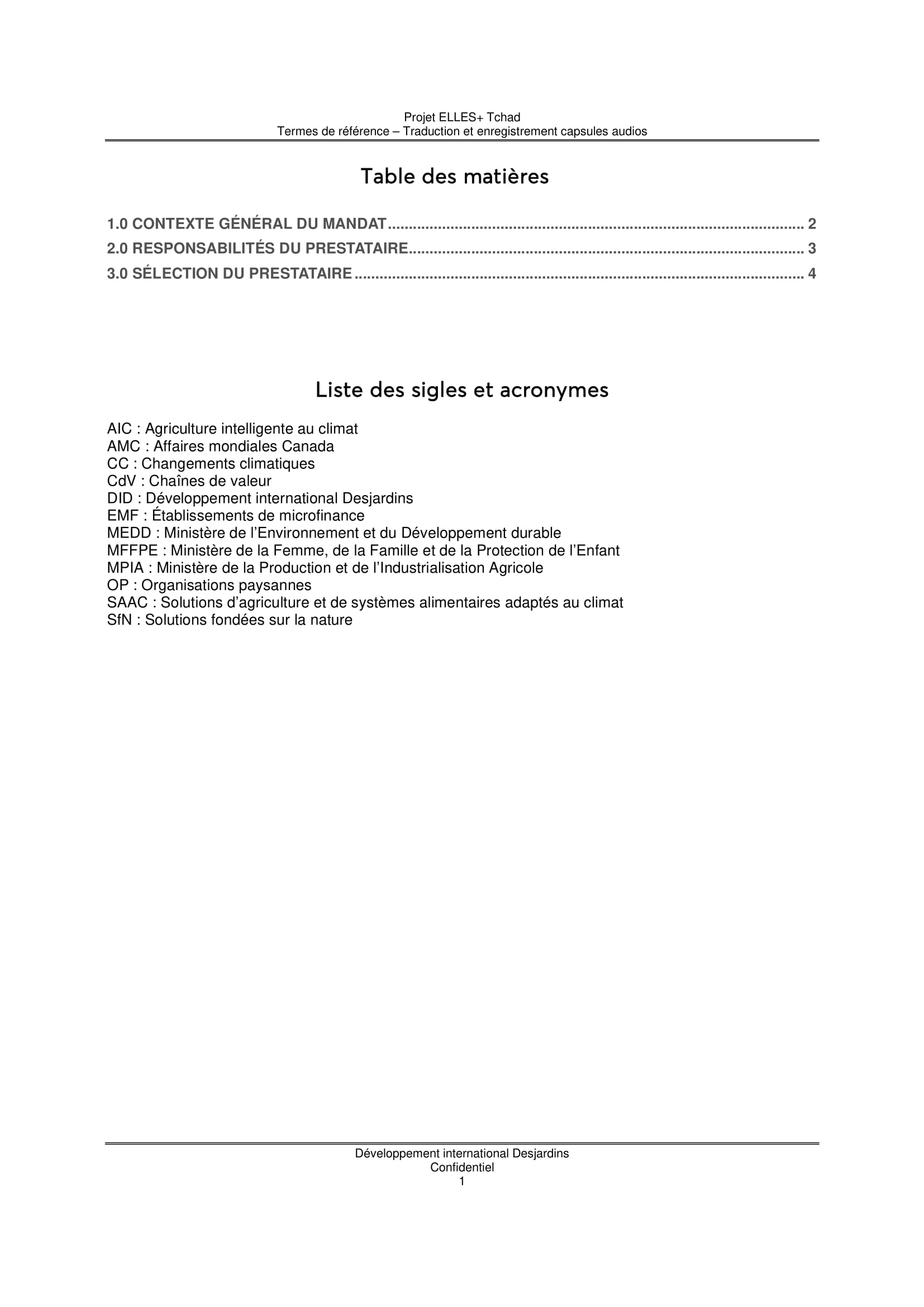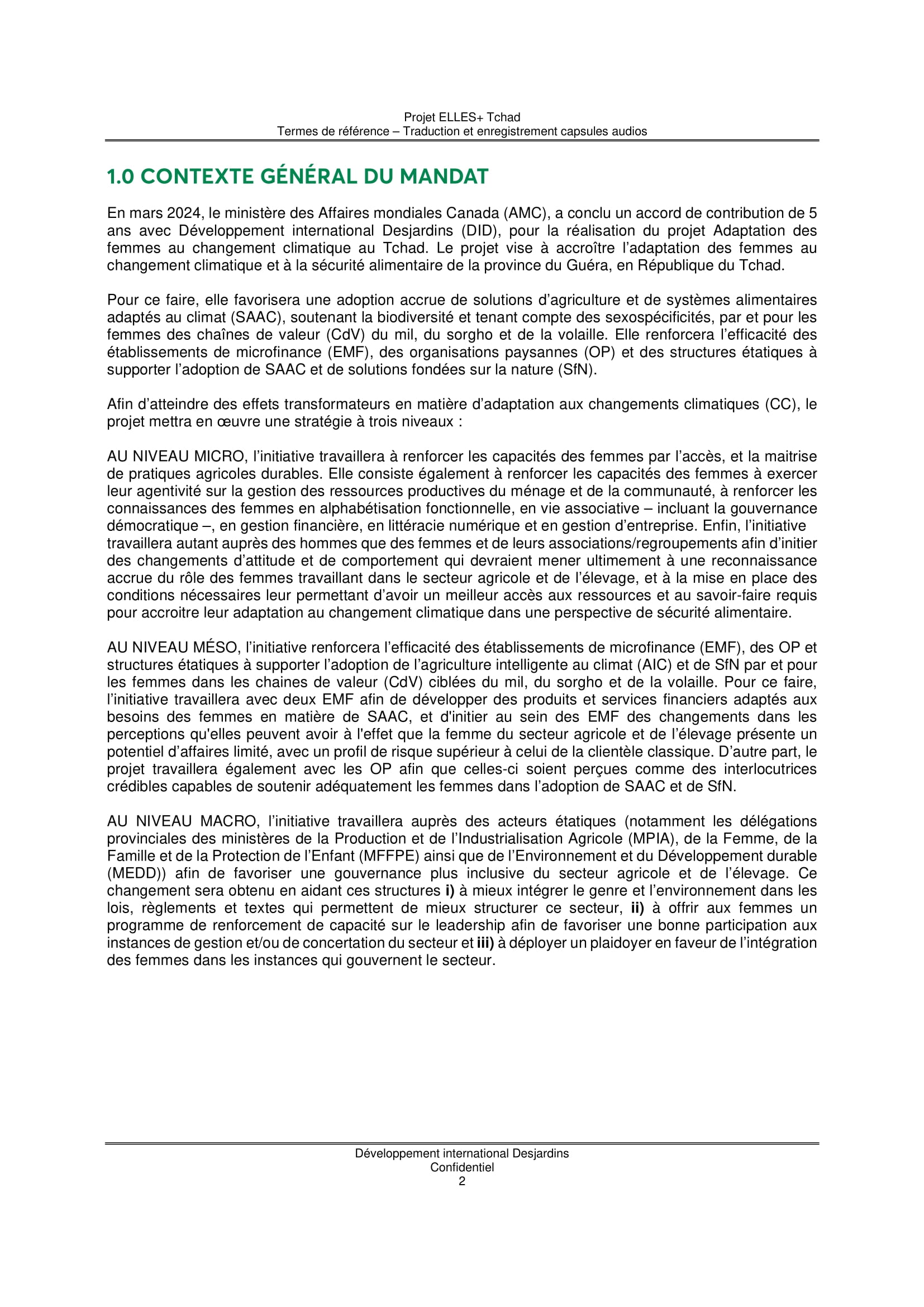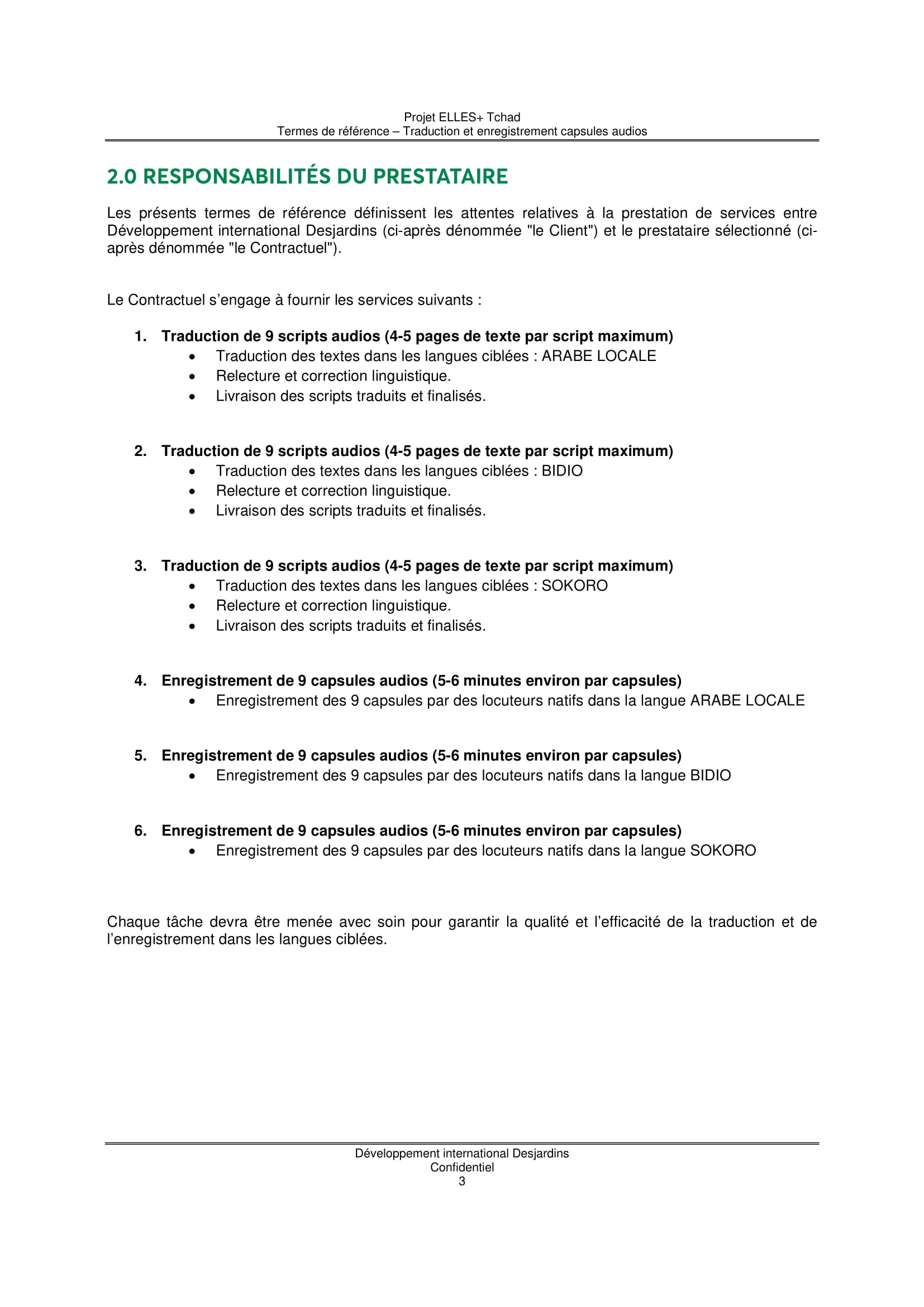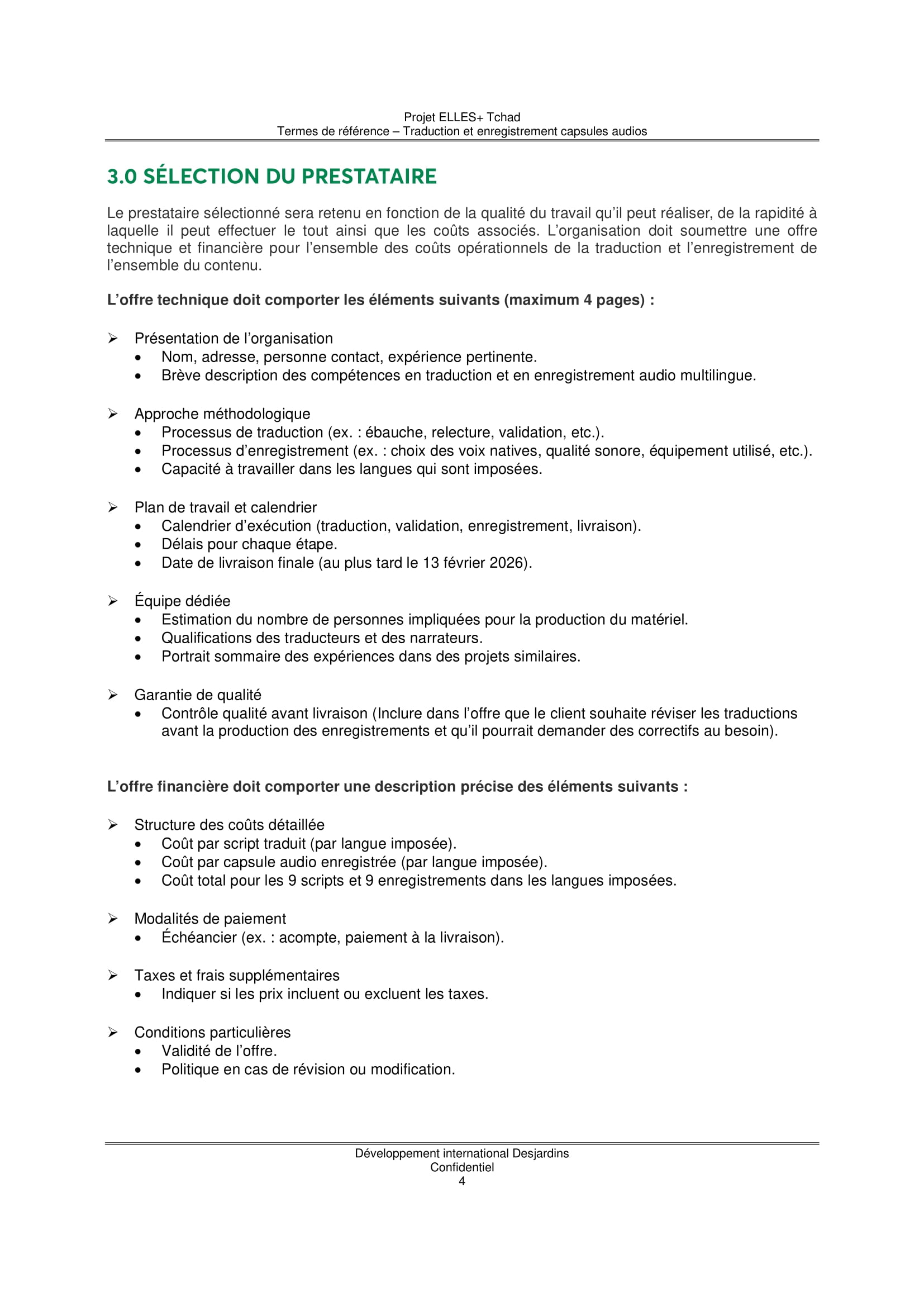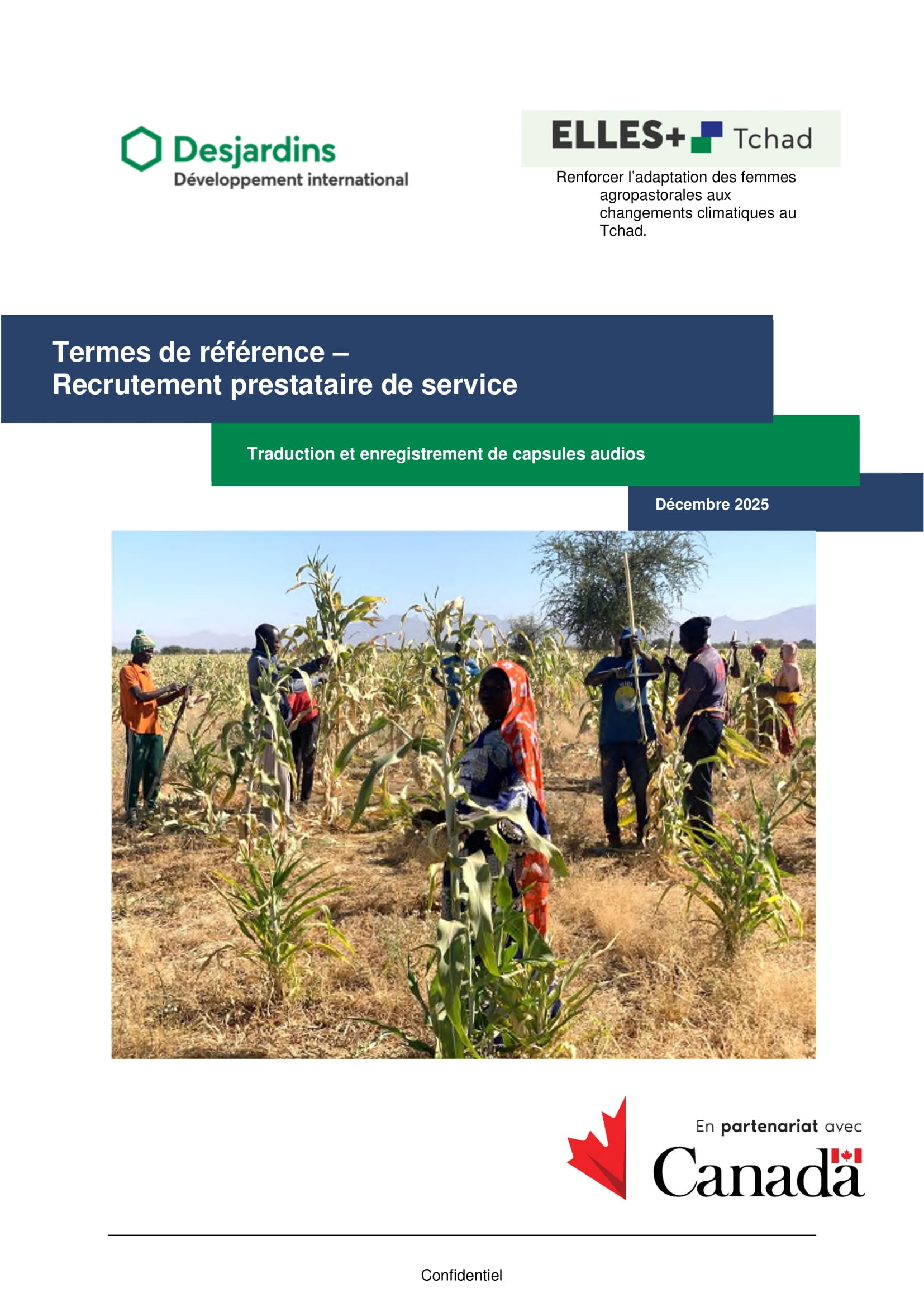 Le Développement International Desjardins (DID) lance un avis d’appel d’offre pour le recrutement d’un prestataire pour la fourniture de service de traduction et enregistrement de capsules audios, Tchad