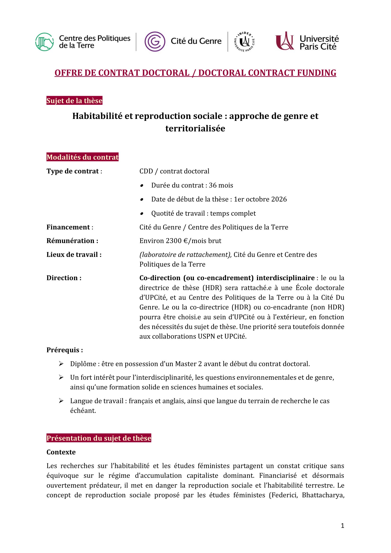 Appel à manifestation d’intérêt pour l’offre de contrat doctoral Mar 18, 2026 Appel à manifestation d’intérêt pour l’offre de contrat doctoral Share on FacebookTweetFollow usSaveAppel à candidatures pour les bourses d’études Banach NAWA, Pologne.Action Education recrute un(e) stagiaire appui à la gestion des connaissances, Paris 11, FranceCooperazione Internazionale (COOPI) recherche un assistant administrateur financier (H/F), Sarh, TchadMSF recrute un(e) Coordinateur(trice) Médical Support, N’Djamena, Tchad