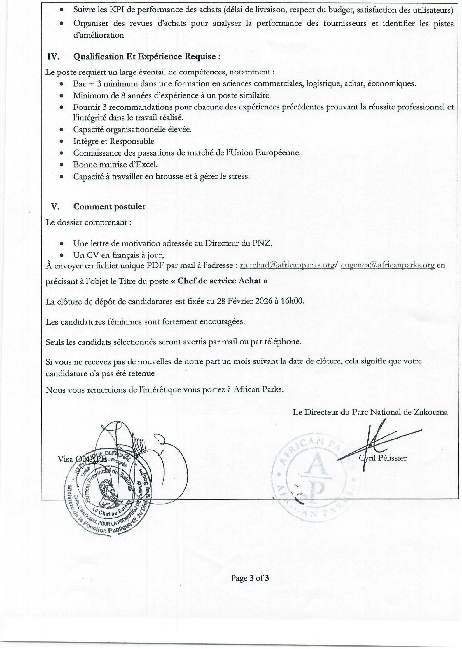 African Parks Network (APN) recrute pour le poste de Chef de Service Achat, PNZ, Tchad Fév 4, 2026 African Parks Network (APN) recrute pour le poste de Chef de Service Achat, PNZ, Tchad Share on FacebookTweetFollow usSaveAppel à candidatures pour la bourse de doctorat 2026 de l’Université internationale de Floride en ingénierie structurelle (entièrement financée), États-UnisAppel à candidatures pour les bourses d’études en masters et doctorats de l’université de Cambridge, Royaume-Uni Oxfam recrute un Assistant aux approvisionnements et logistique (H/F), Est, TchadFIDIS INVEST lance une formation certifiée en audit et comptabilité bancaire, google meet