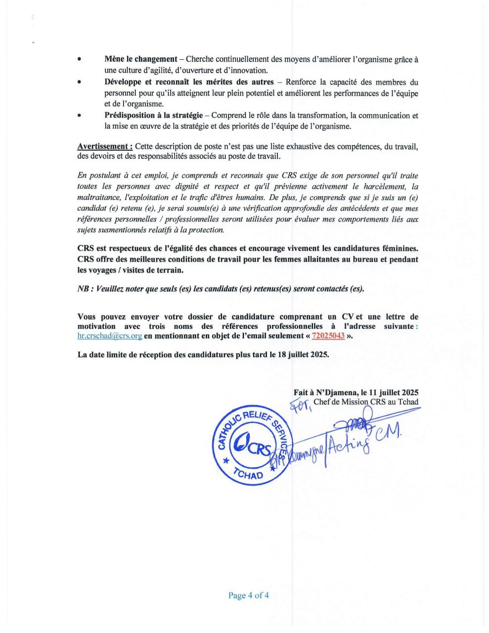 - La DRC recrute un responsable département Finance et administration, Adré, Tchad
