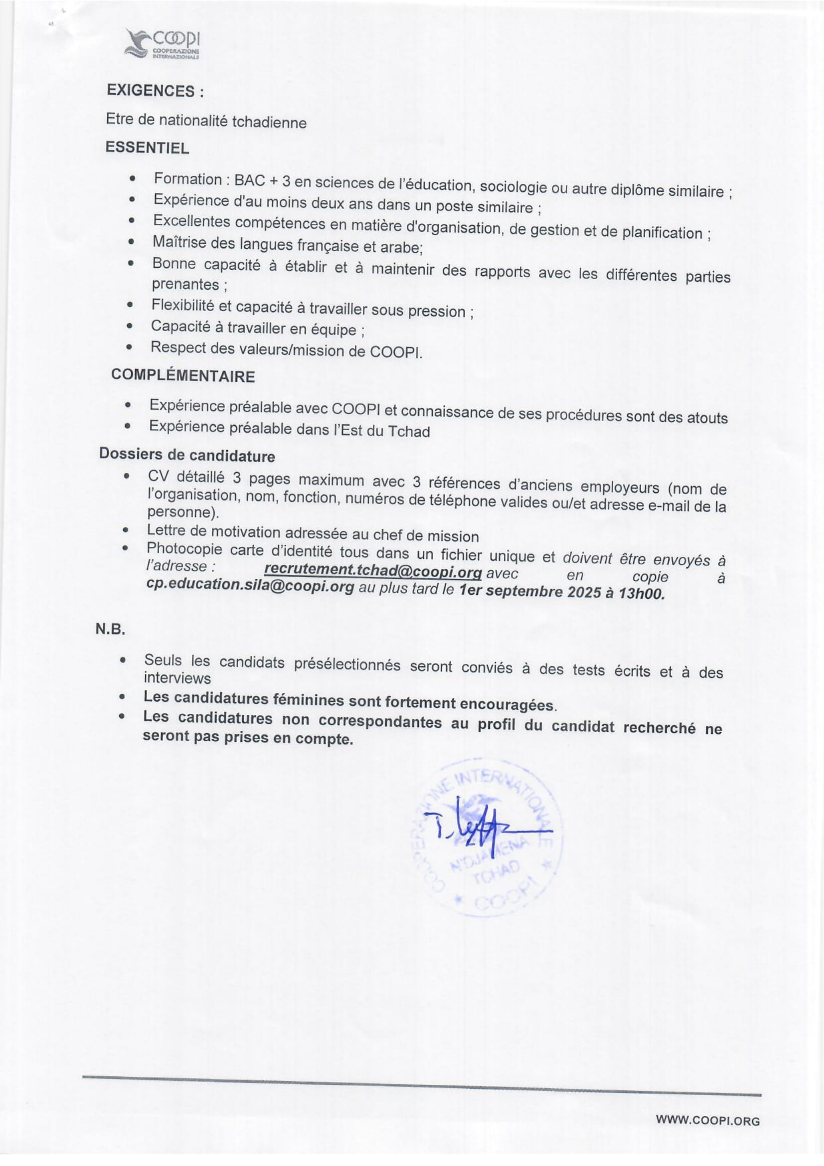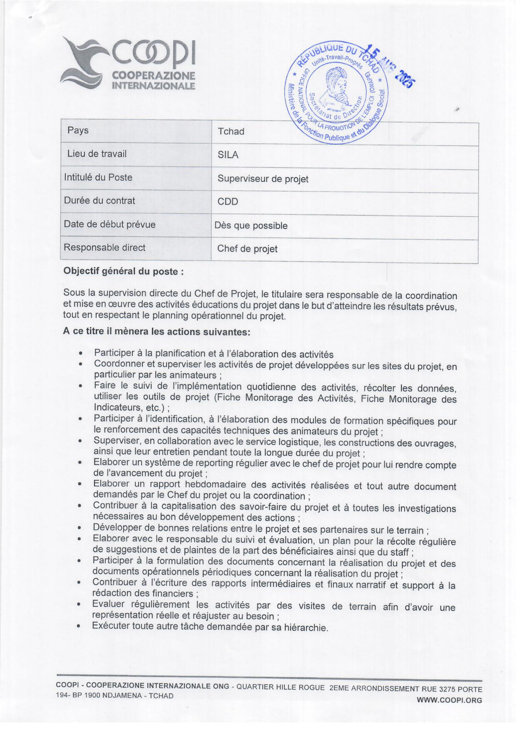 Cooperazione Internazionale recrute un superviseur de projet, Sila, Tchad