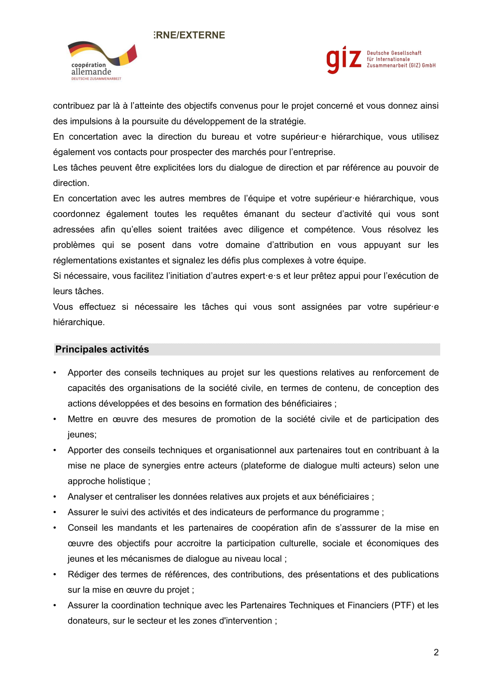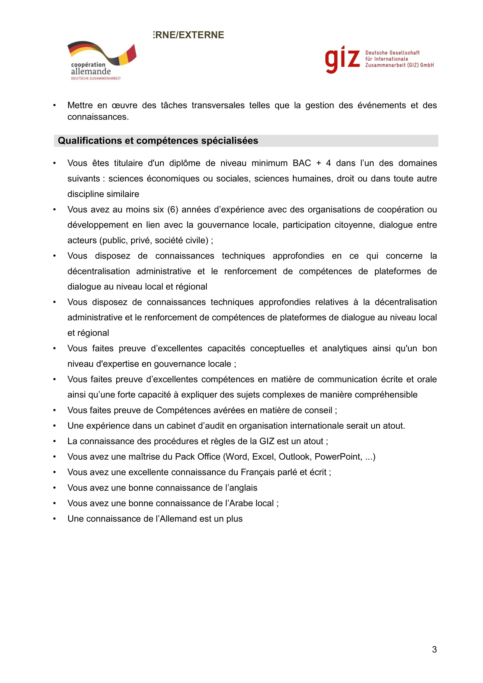 GIZ recrute un(e) conseiller(e) en développement des capacités des organisations de la société civile, Pala, Tchad Sep 8, 2025 GIZ recrute un(e) conseiller(e) en développement des capacités des organisations de la société civile, Pala, Tchad Share on FacebookTweetFollow usSaveGIZ recrute un expert en crise, conflits et catastrophes (H/F), N’Djamena, TchadMédecins Sans Frontières (MSF) recrute un stagiaire en communication digitale, Dakar, SénégalLe Centre de services régional des Nations Unies à Entebbe (RSCE) recrute un Stagiaire – Technologie de l’information, Entebbe, OugandaBourses d’études pour les leaders mondiaux émergents de l’American University.