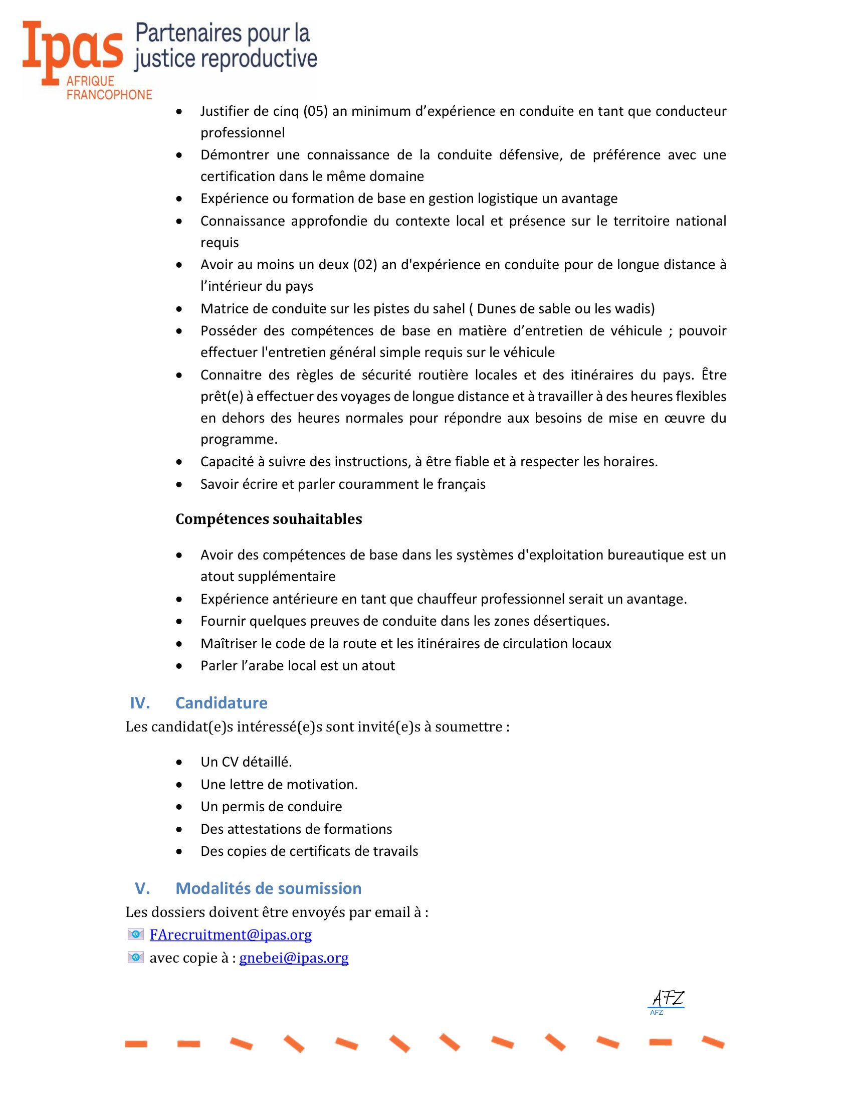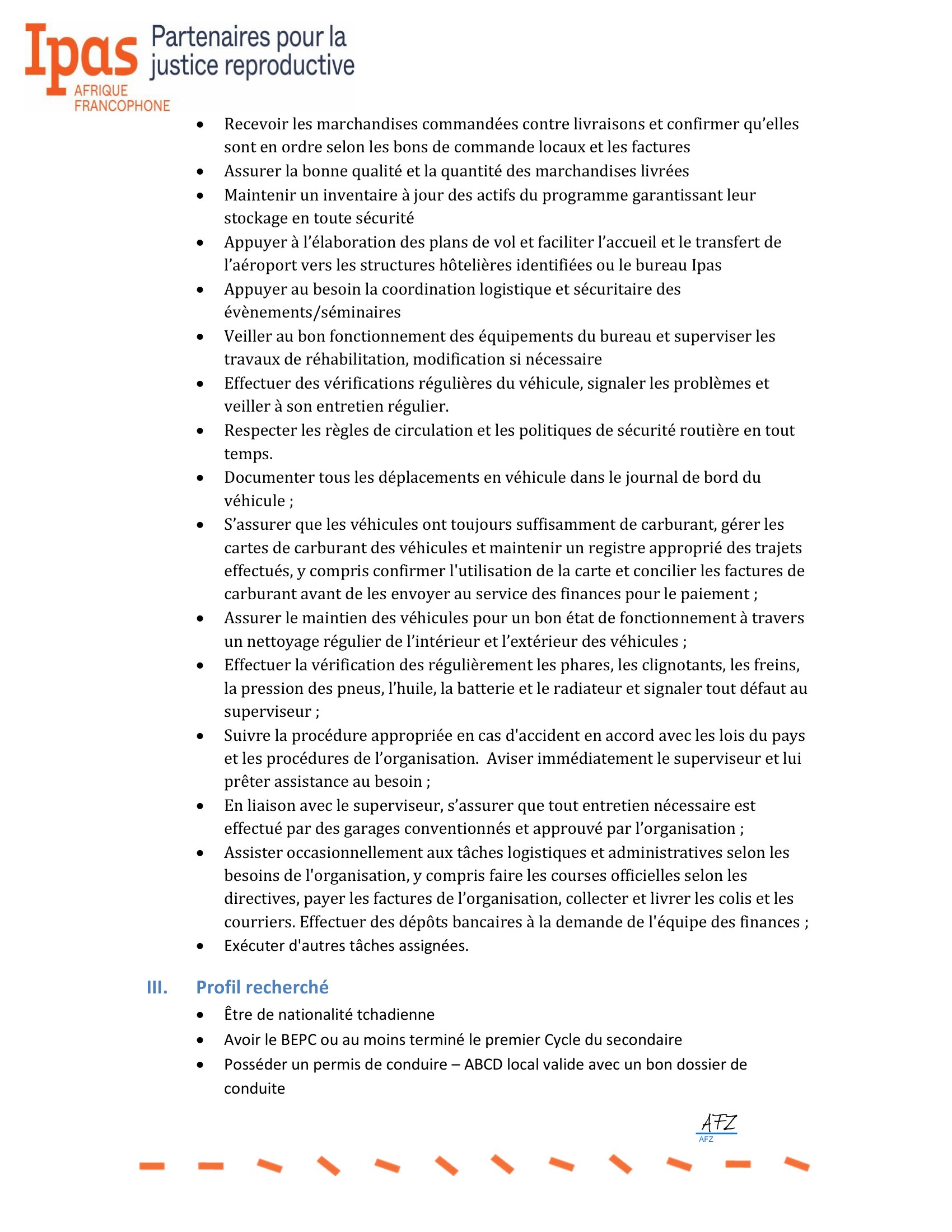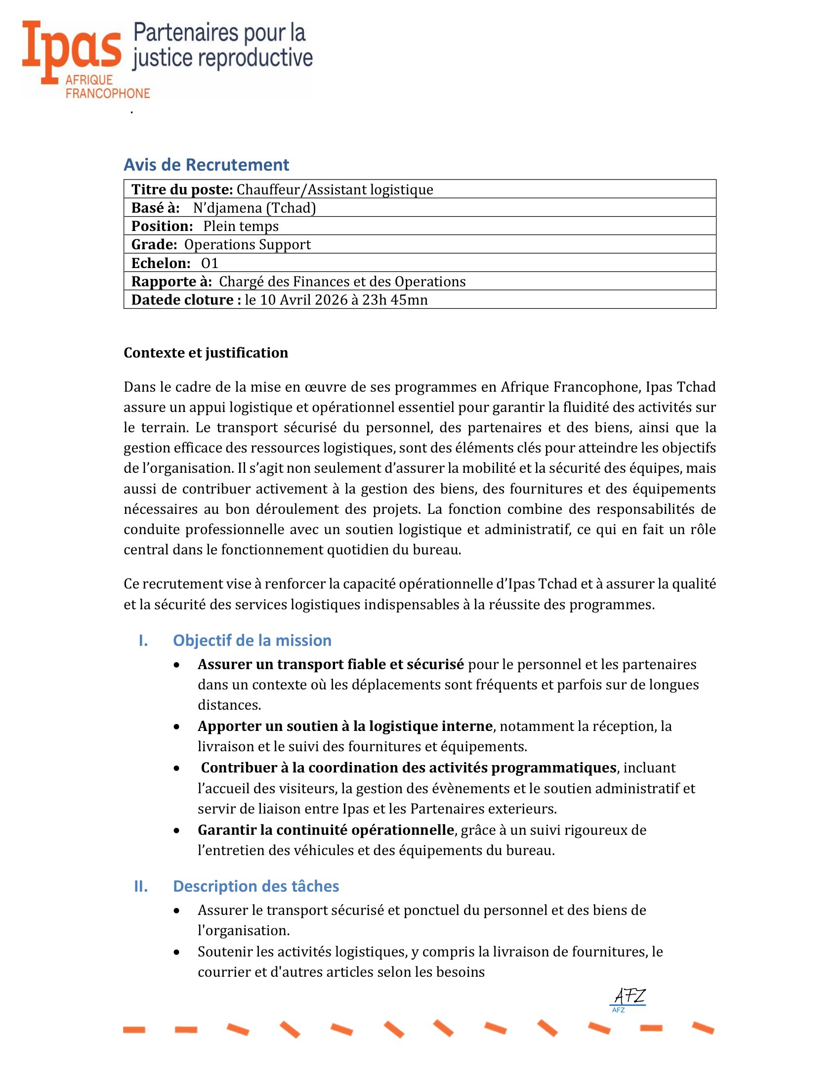 Ipas Tchad recrute un chauffeur/Assistant Logistique, N’Djamena, Tchad Avr 7, 2026 Ipas Tchad recrute un chauffeur/Assistant Logistique, N’Djamena, Tchad Share on FacebookTweetFollow usSaveDirection de l’Emploi recrute des stagiaires archivistes, Dakar, Sénégal L’Université du Kent lance un appel à candidatures pour les bourses mondiales, Royaume-Uni.Caritas Suisse lance un avis d’appel d’offre pour le recrutement d’un fournisseur pour la dotation des banques de céréales, Batha Ouest, Ouadi-Rimé, Tchad