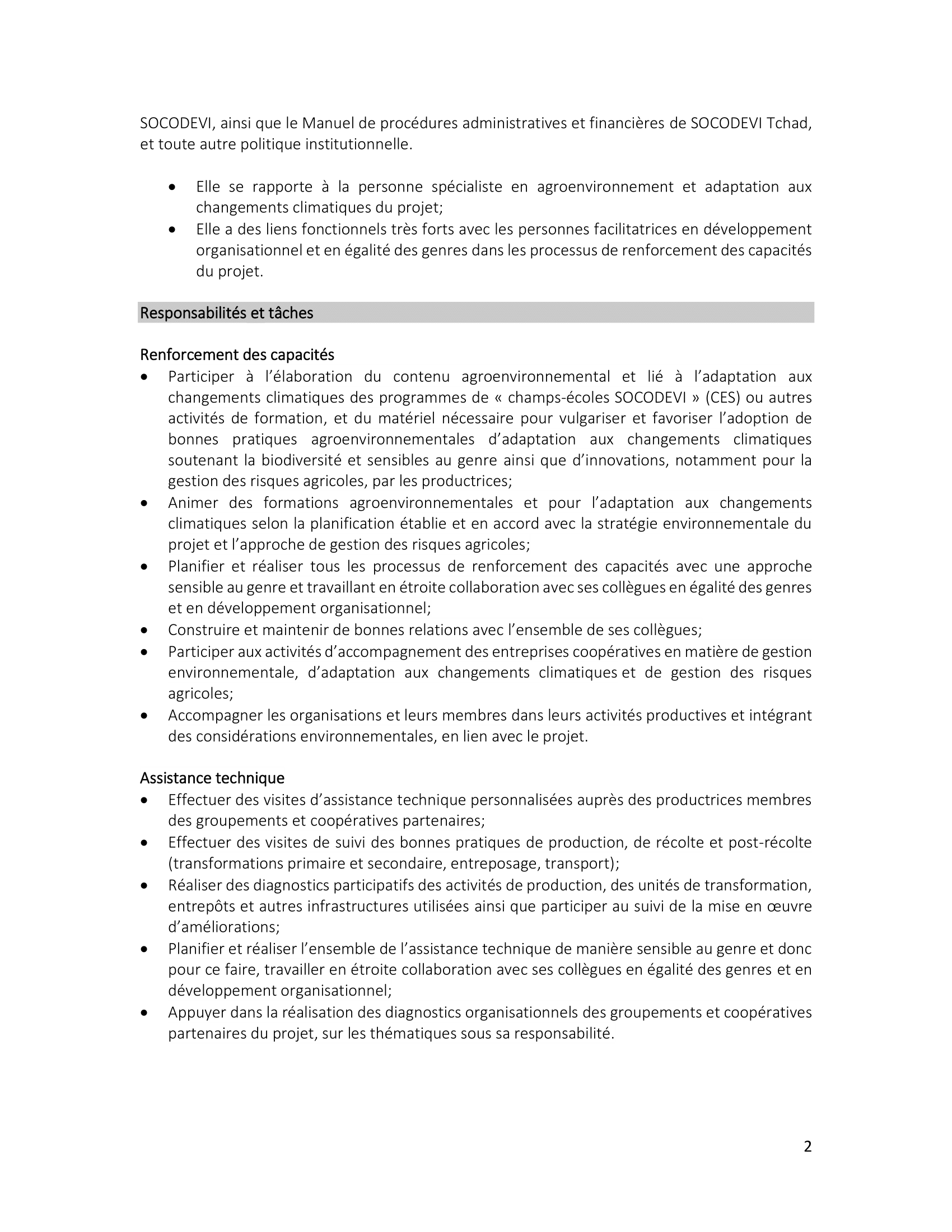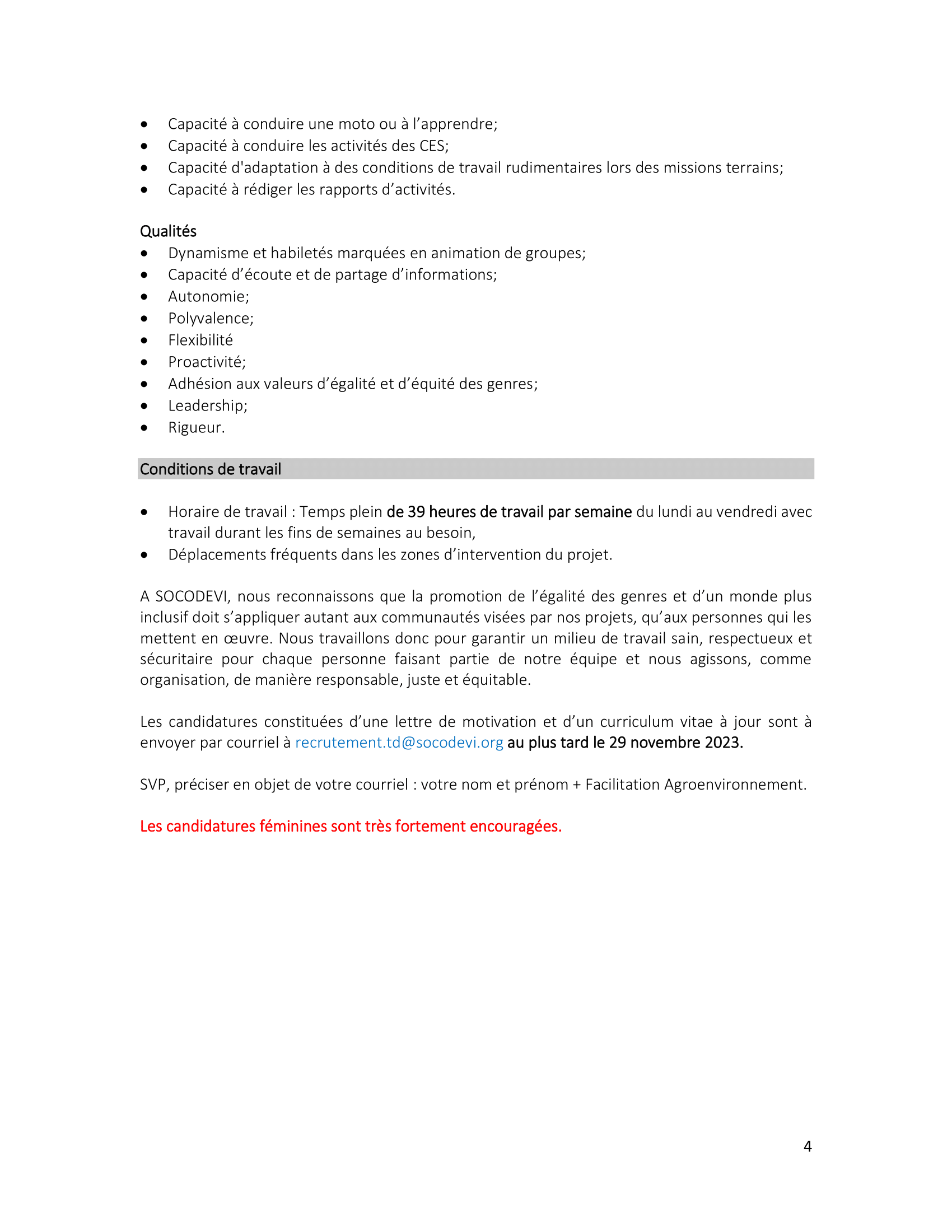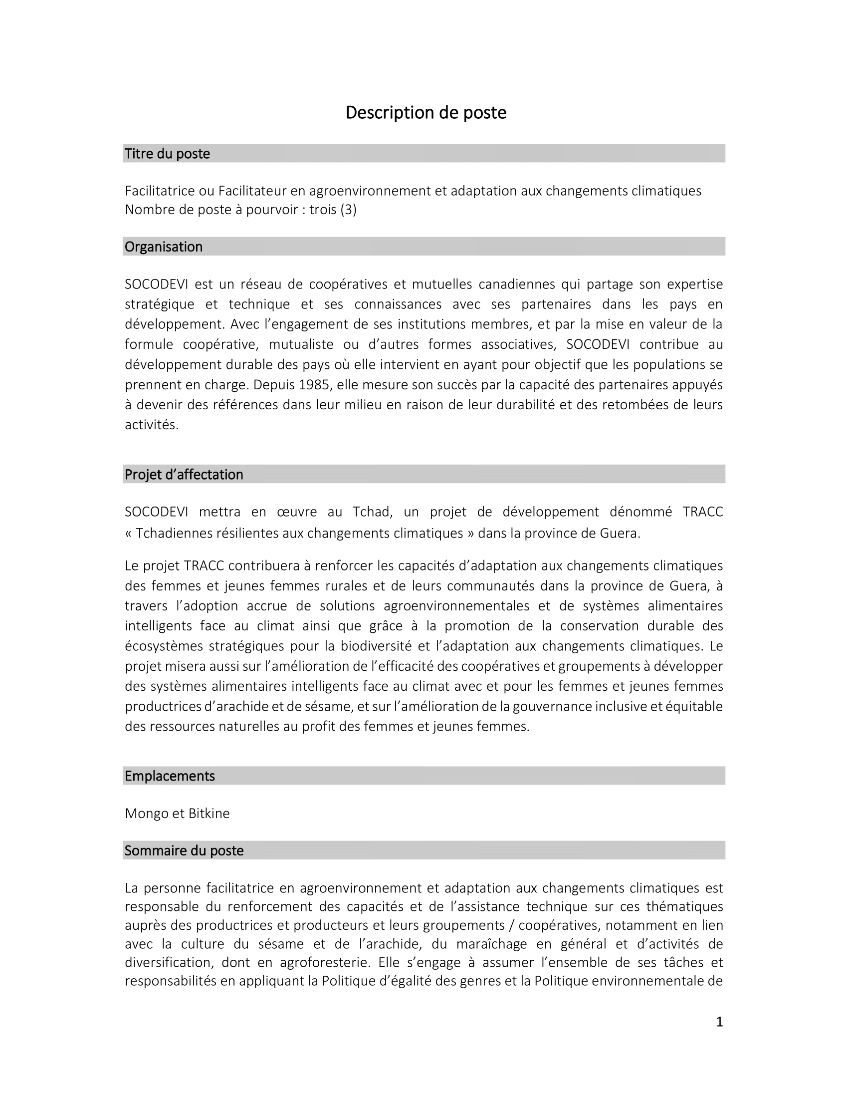 SOCODEVI recrute trois (3) Facilitateurs en agroenvironnement et adaptation aux changements climatiques, Mongo et Biltine, Tchad