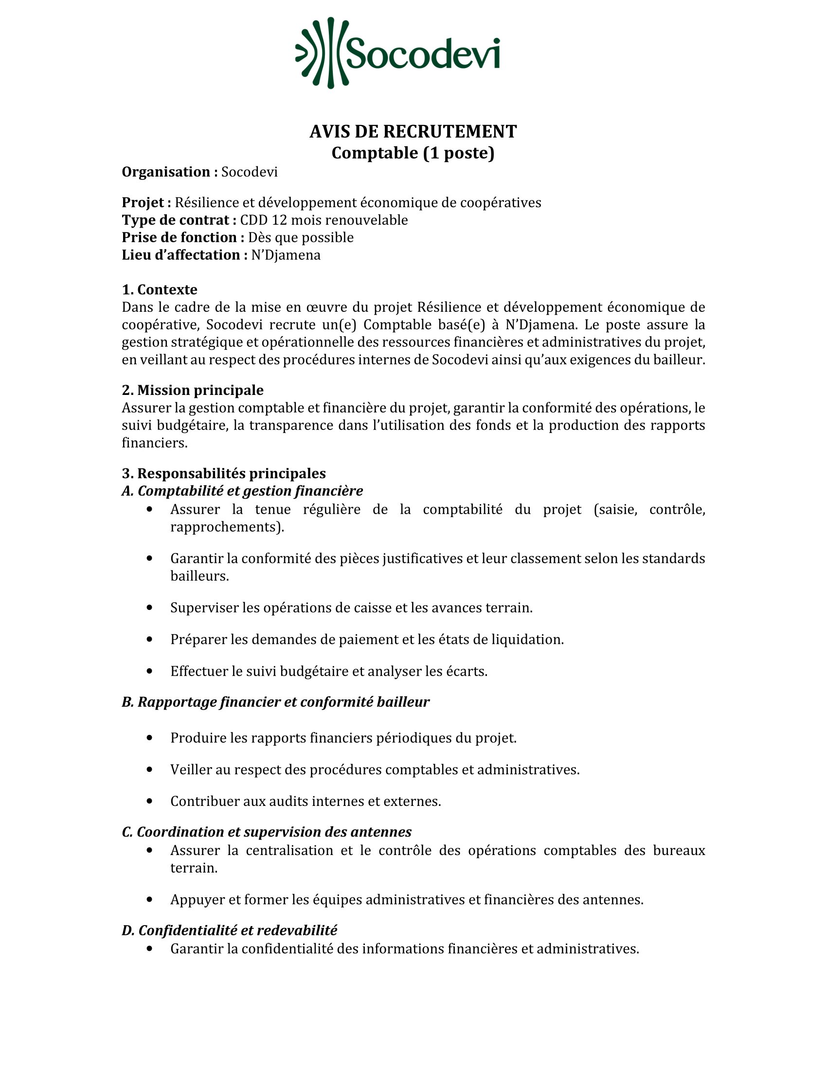 Socodevi recrute un Comptable, N’Djamena, Tchad