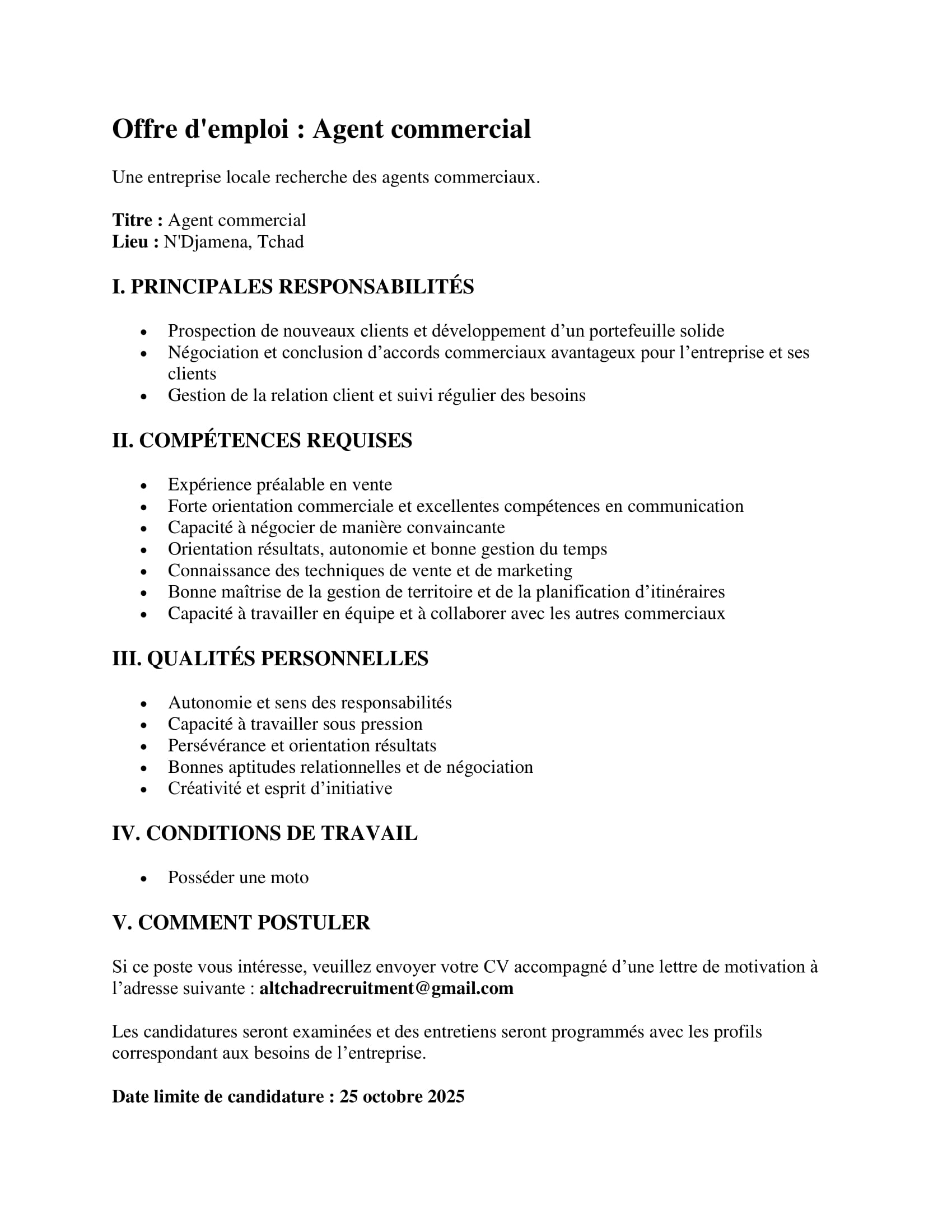 Une entreprise locale recrute des agents commerciaux, N’Djamena, Tchad