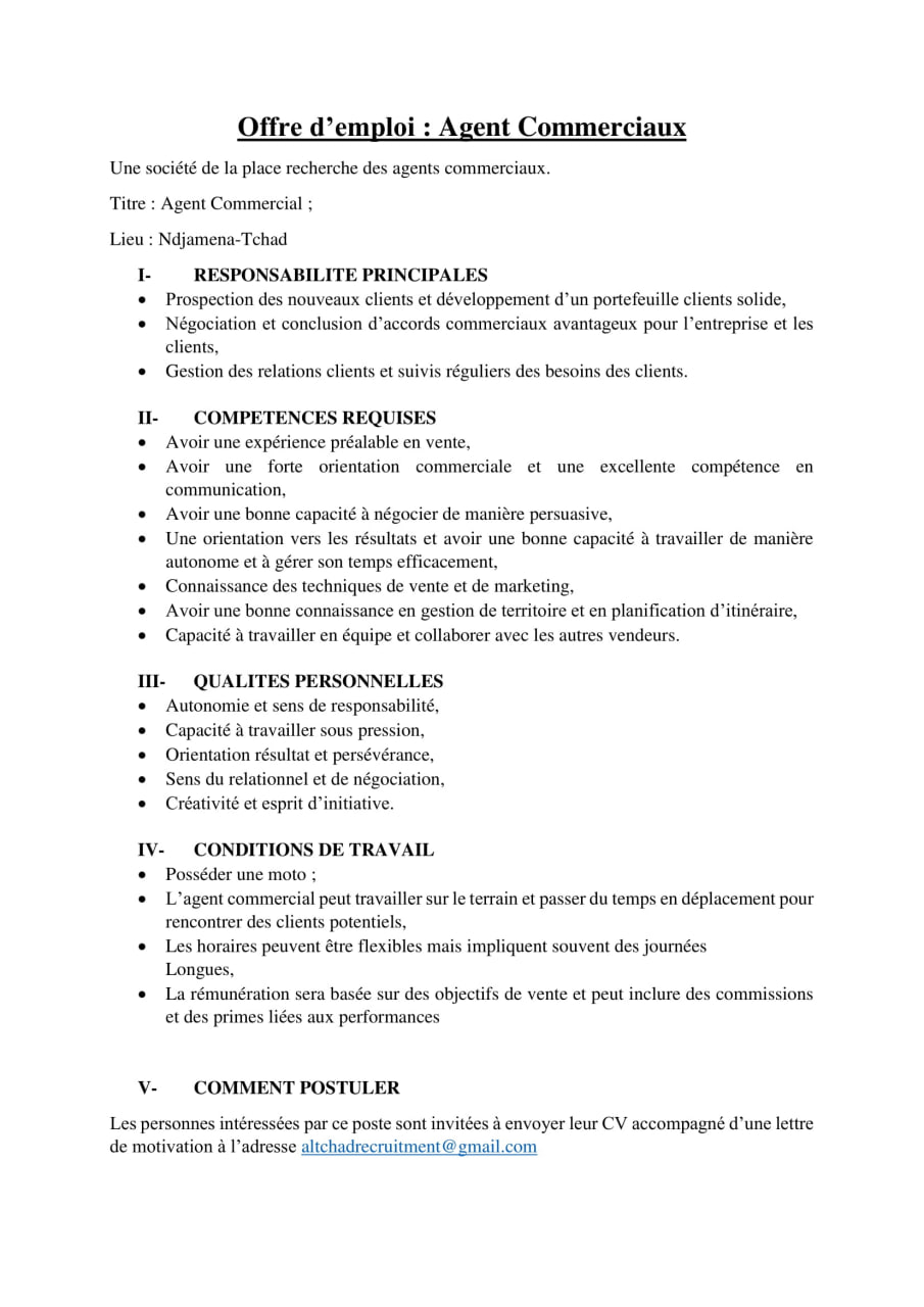 Une société de la place recherche des agents commerciaux, N’Djamena, Tchad