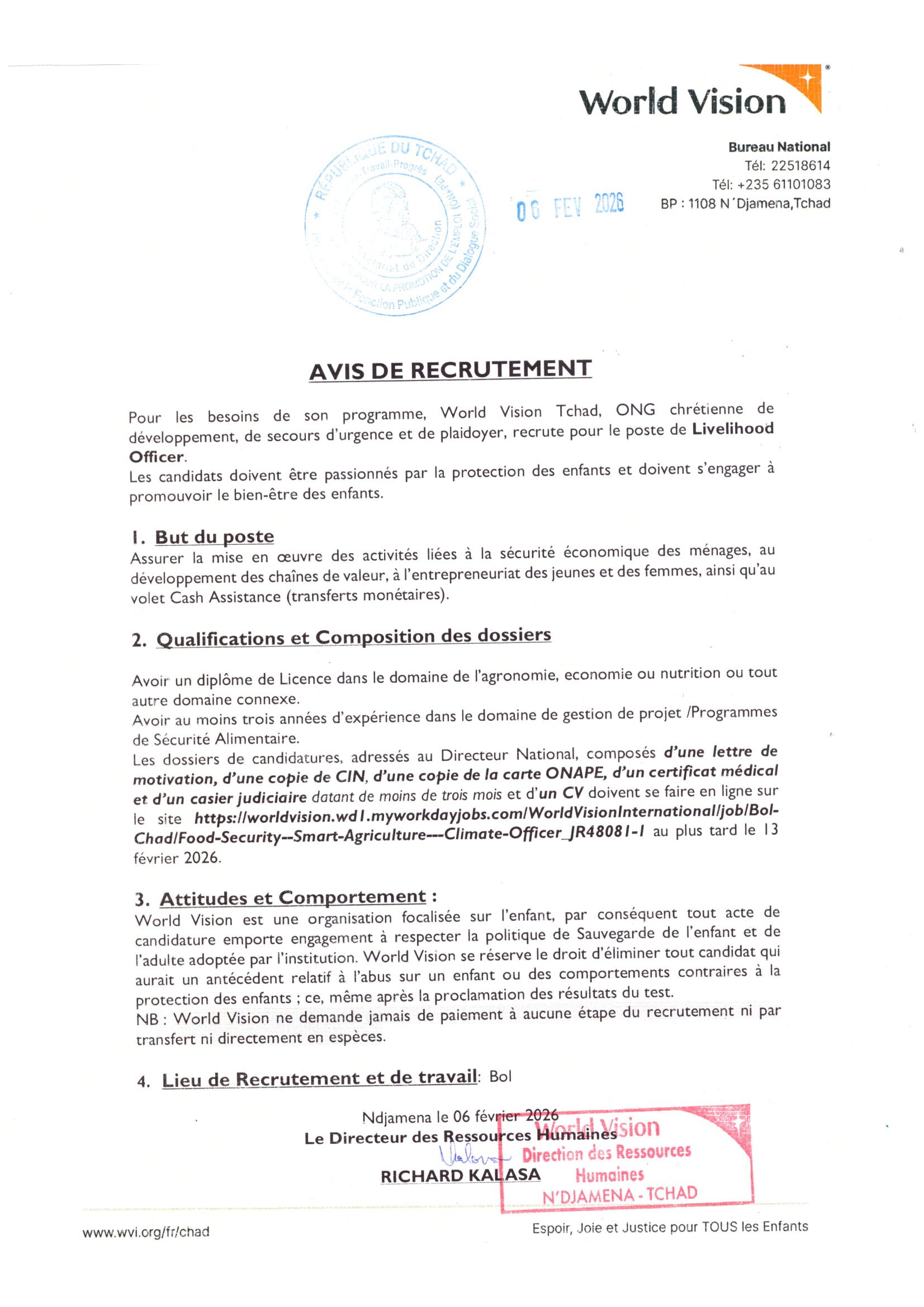 World Vision recrute pour le poste de Livelihood Officer, Bol, Tchad Fév 7, 2026 World Vision recrute pour le poste de Livelihood Officer, Bol, Tchad Postuler ici Share on FacebookTweetFollow usSaveProgramme de bourses de la Fondation Mastercard à l’université d’Oxford, Royaume-UniL’ONG Begum Organization for Women recrute un stagiaire appui à la communication, Paris, FranceAvis de formation dans le cadre d’obtention de la certification en Techniques Bancaires et FinancièresProgramme d’Admission et prix d’entrée et bourses 2025 de l’Université York au Canada pour les étudiants internationaux, Royaume-Uni