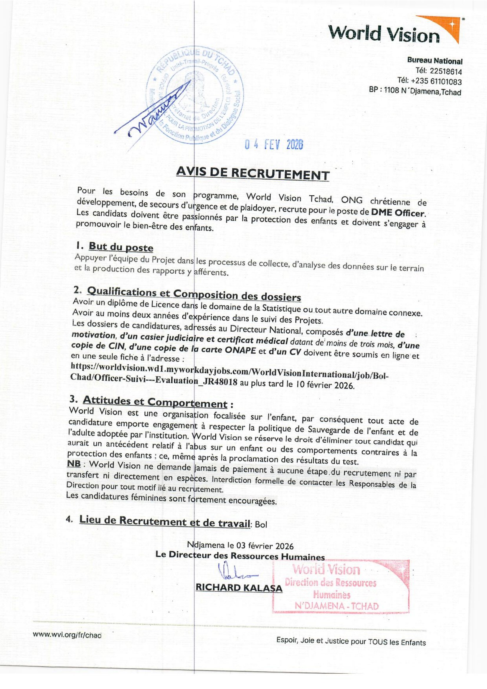 World Vision recrute pour le poste d’Officier de DME Officer, Bol, Tchad Fév 4, 2026 World Vision recrute pour le poste d’Officier de DME Officer, Bol, Tchad Postuler ici Share on FacebookTweetFollow usSaveAppel à candidatures pour la bourse de doctorat 2026 de l’Université internationale de Floride en ingénierie structurelle (entièrement financée), États-UnisAppel à candidatures pour les bourses d’études en masters et doctorats de l’université de Cambridge, Royaume-Uni Oxfam recrute un Assistant aux approvisionnements et logistique (H/F), Est, TchadFIDIS INVEST lance une formation certifiée en audit et comptabilité bancaire, google meet