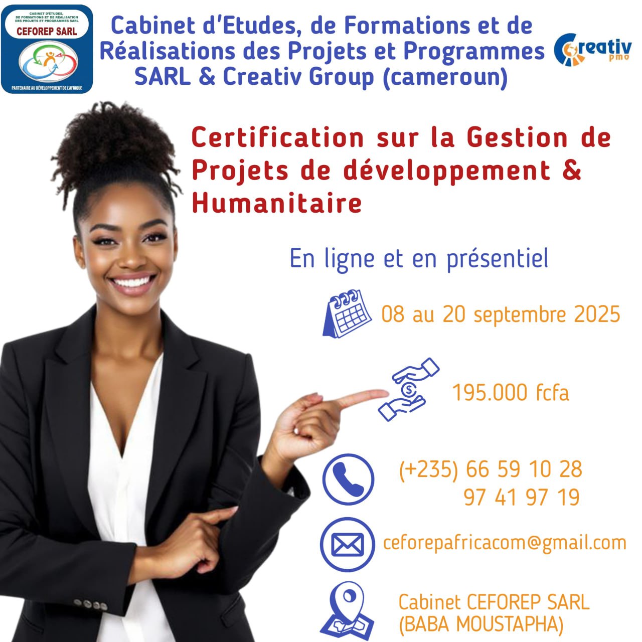 CEFOREP SARL organise une formation en Gestion de Projets de Développement & Humanitaire, N’Djamena, Tchad
