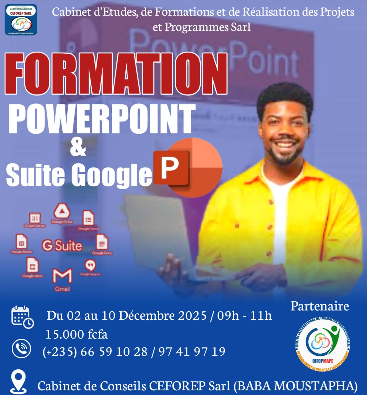 CEFOREP SARL organise une formation sur le Powerpoint & Suite Google, N’Djamena, Tchad