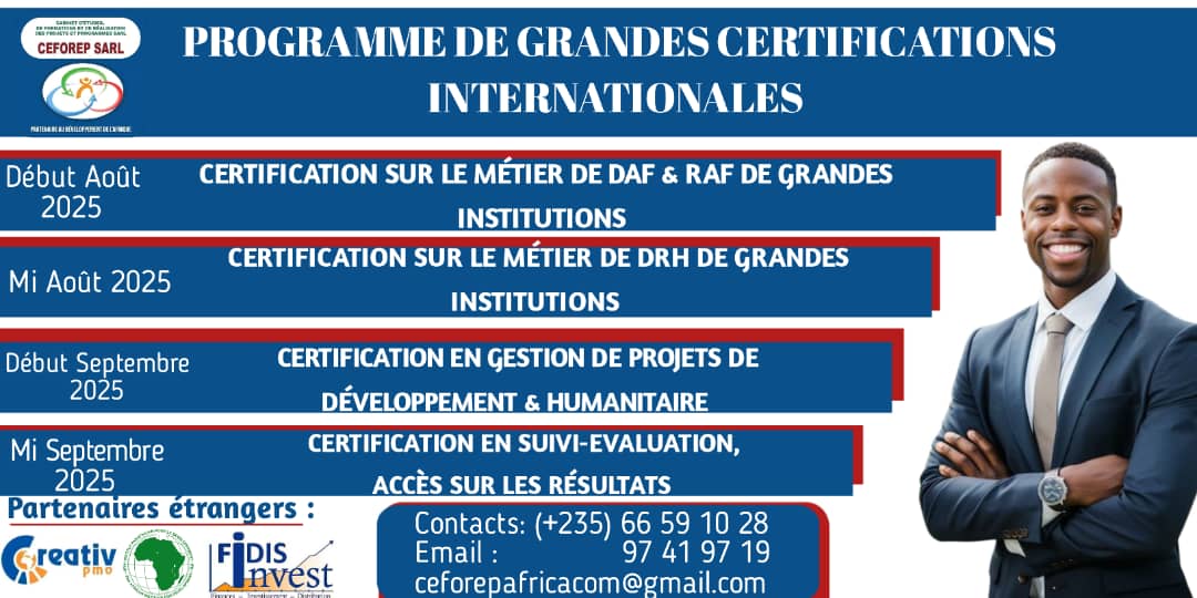 Le cabinet CEFOREP SARL, en partenariat avec des institutions de renom, vous propose un programme de grandes certifications internationales dès août 2025.