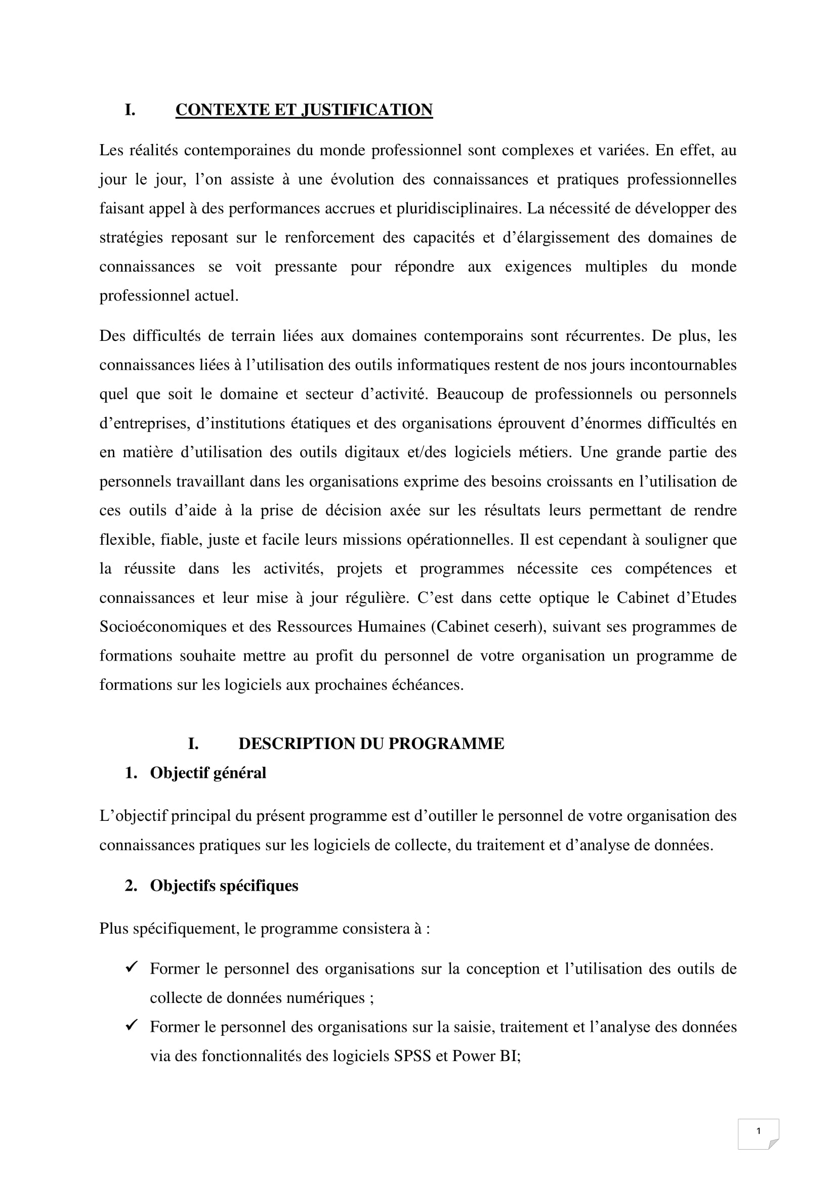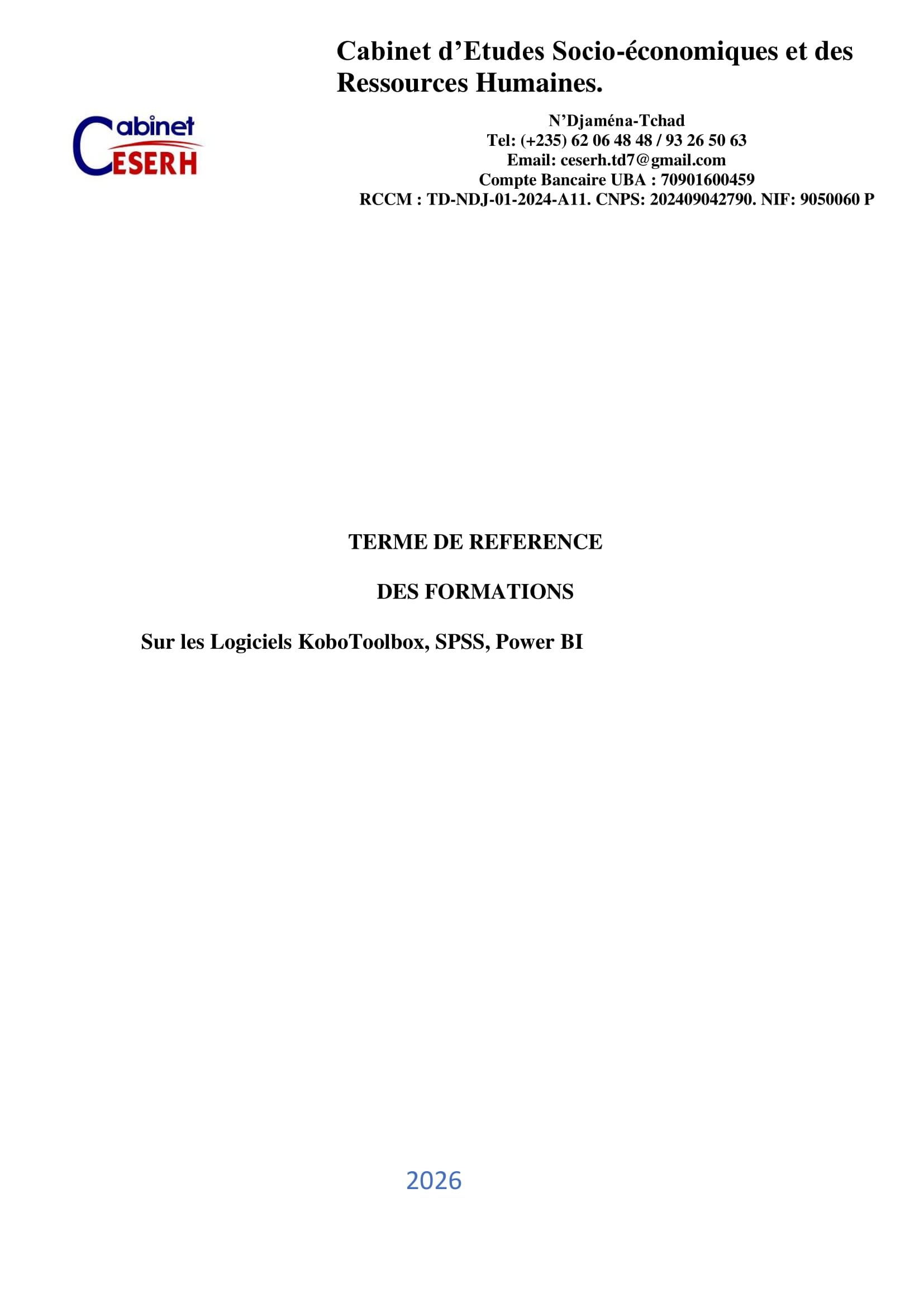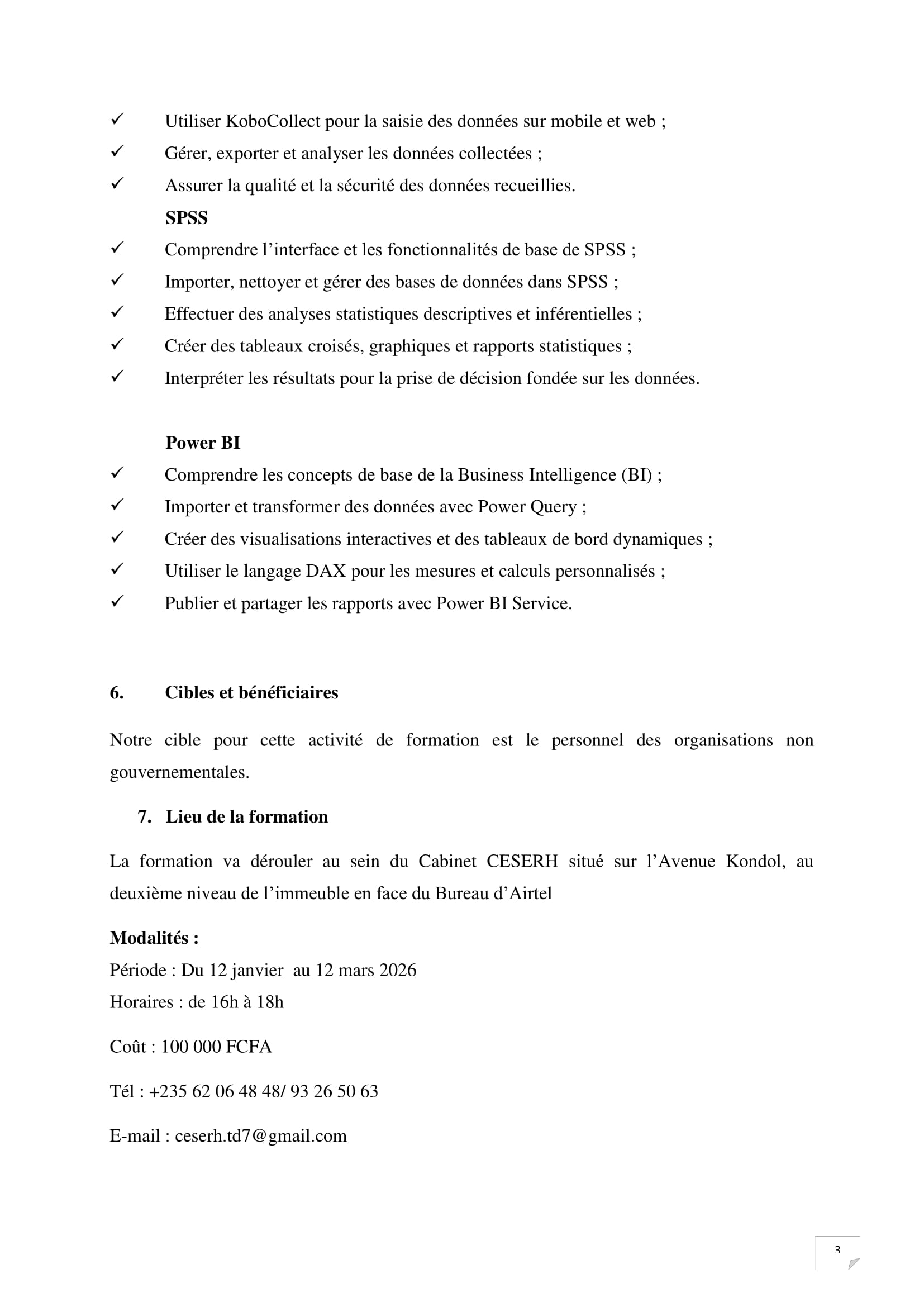 Le Cabinet d’Etudes Socio-économiques et des Ressources Humaines (CESERH) organise une formation sur les logiciels KoboToolbox, SPSS, Power BI, N’Djamena, Tchad