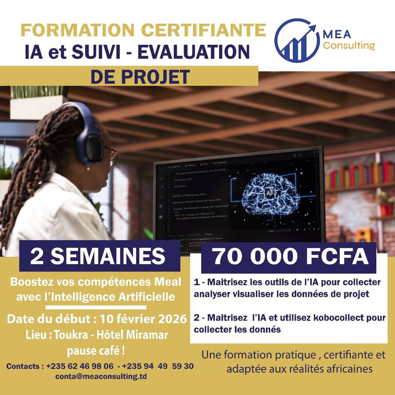 Le Cabinet MEA Consulting organise une formation certifiante IA et Suivi – Evaluation de Projets, N’Djamena, Tchad