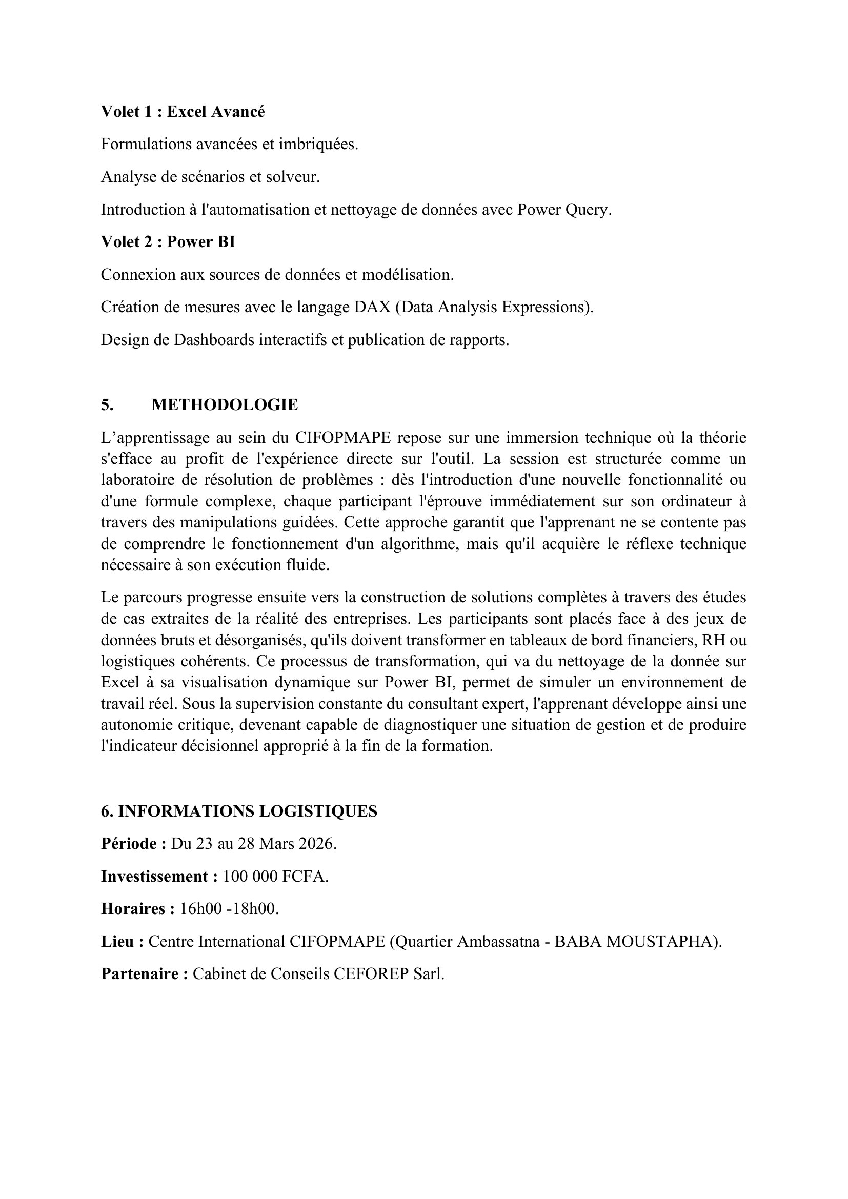 Le Centre International CIFOPMAPE en collaboration avec le Cabinet CEFOREP Sarl, organise une formation sur Excel Avancé & Power BI, N’Djamena, Tchad Avr 8, 2026 Le Centre International CIFOPMAPE en collaboration avec le Cabinet CEFOREP Sarl, organise une formation sur Excel Avancé & Power BI, N’Djamena, Tchad Share on FacebookTweetFollow usSaveSolidarité International (SI) recrute un stagiaire assistant rédaction & relations presse (H/F), Clichy, FranceAfrican Parks Network lance un avis d’appel à candidature/offre de fournisseur de service d’assuranceAfrican Parks Network recrute un Coordonnateur(ice) du programme d’Education Environnementale (EE), Tchad Le Consortium ACORD Tchad et ADI lancent un avis d’appel d’offre national pour la fourniture d’un véhicule Toyota Land-Cruiser 4×4 et de deux motos, N’Djamena, Tchad