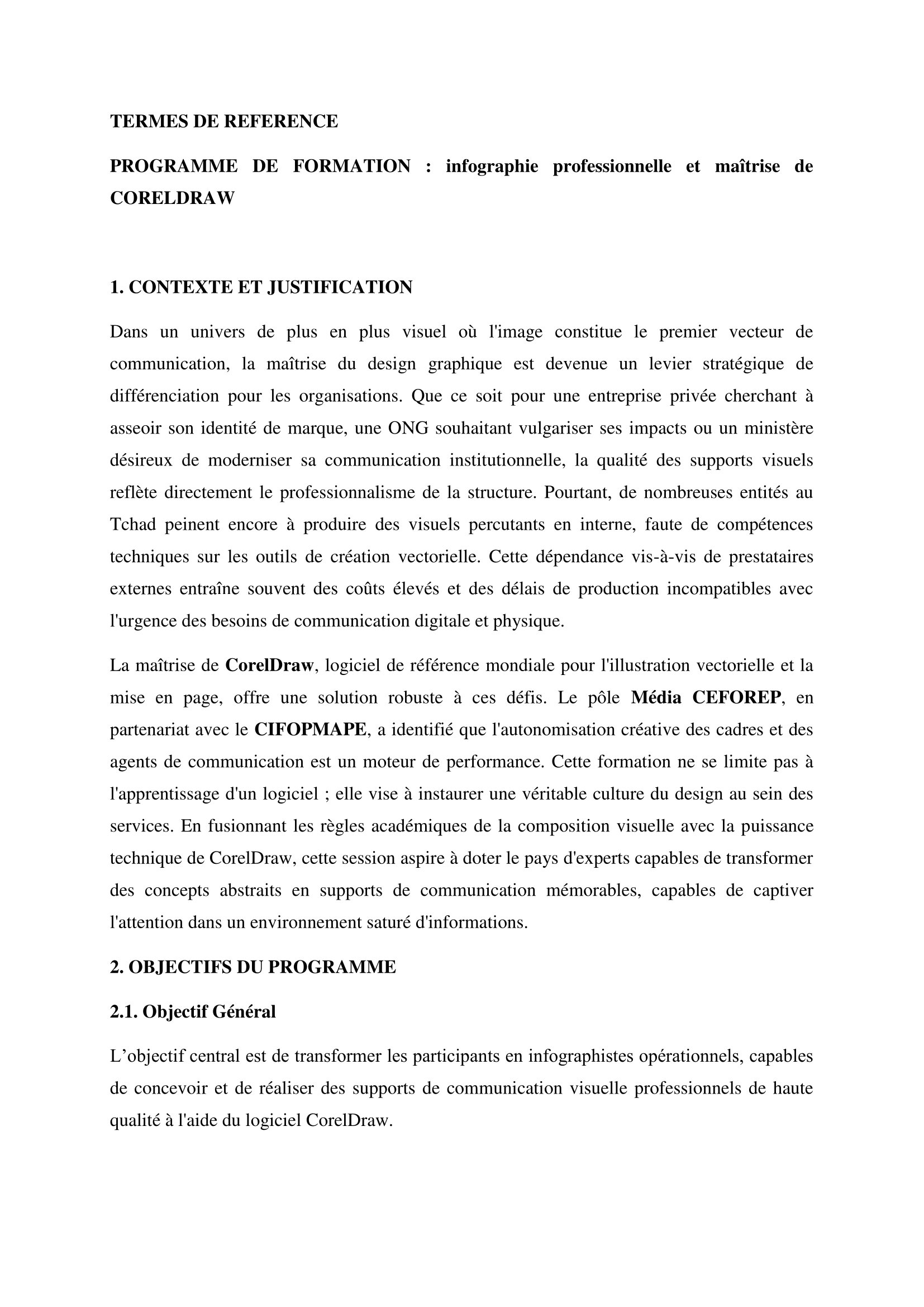 Le pôle Média CEFOREP, en partenariat avec le CIFOPMAPE, organise une formation en Infographie professionnelle et Maîtrise de CORELDRAW, N’Djamena, Tchad