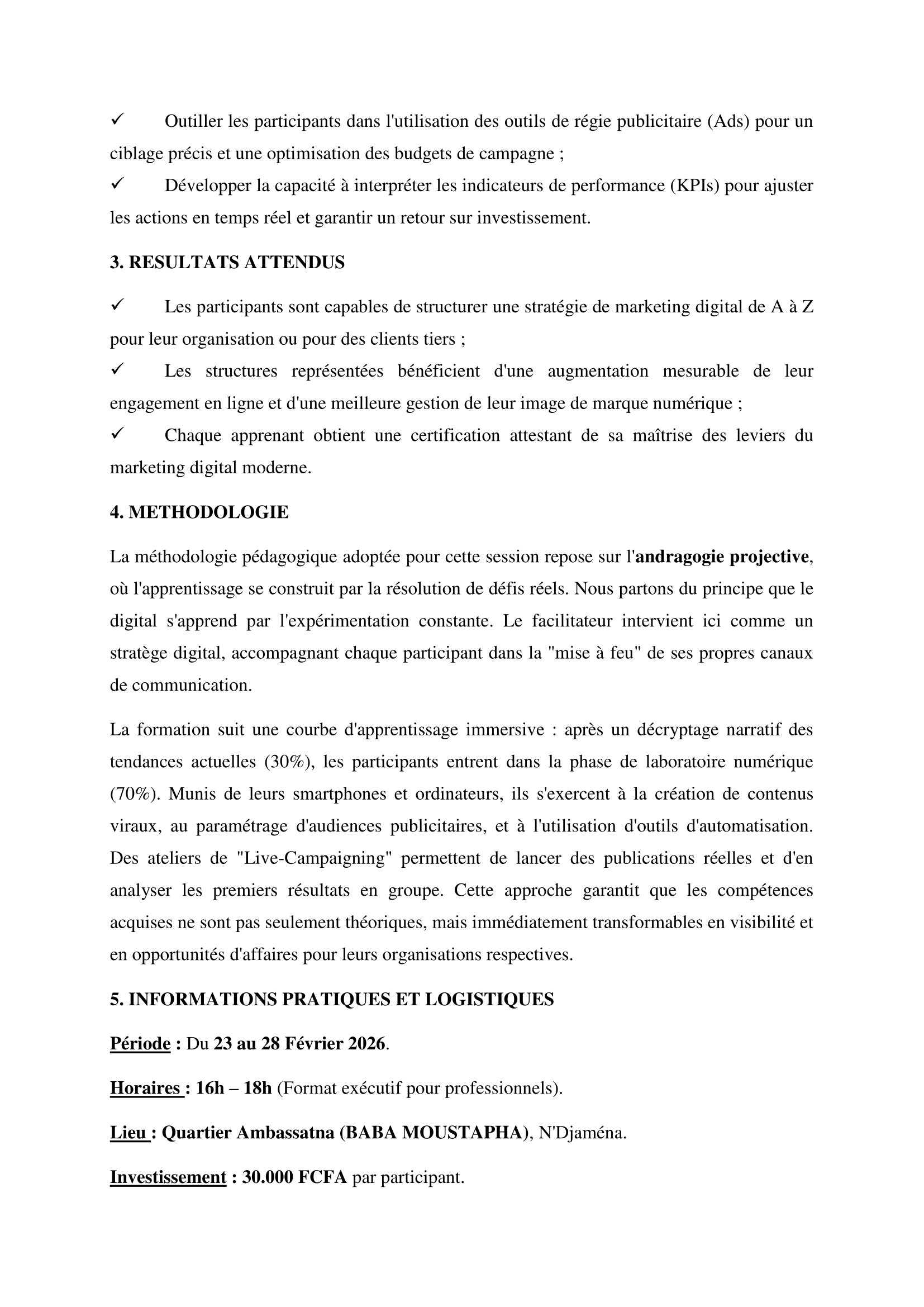 Le pôle Média CEFOREP, en synergie avec le CIFOPMAPE organise une formation en Marketing Digital et Stratégies de visibilité en ligne, N’Djamena, Tchad